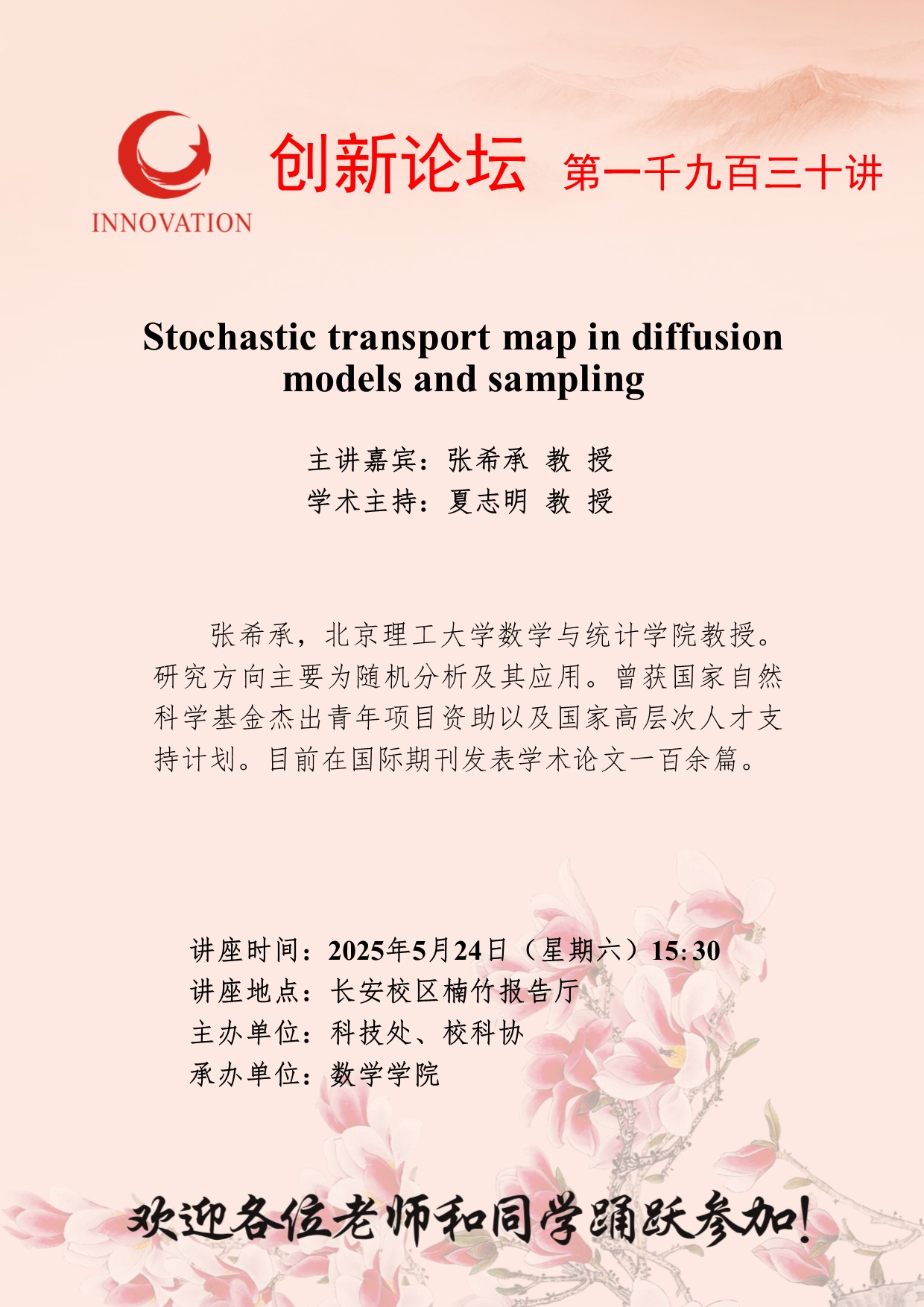张希承 教授 开云手机网页版登录入口创新论坛第一千九百三十讲:Stochastic transport map in diffusion models and sampling 讲座时间 2025年5月24日(星期六)15:30 讲座地点 长安校区楠竹报告厅 讲座人介绍 张希承 教授 讲座内容