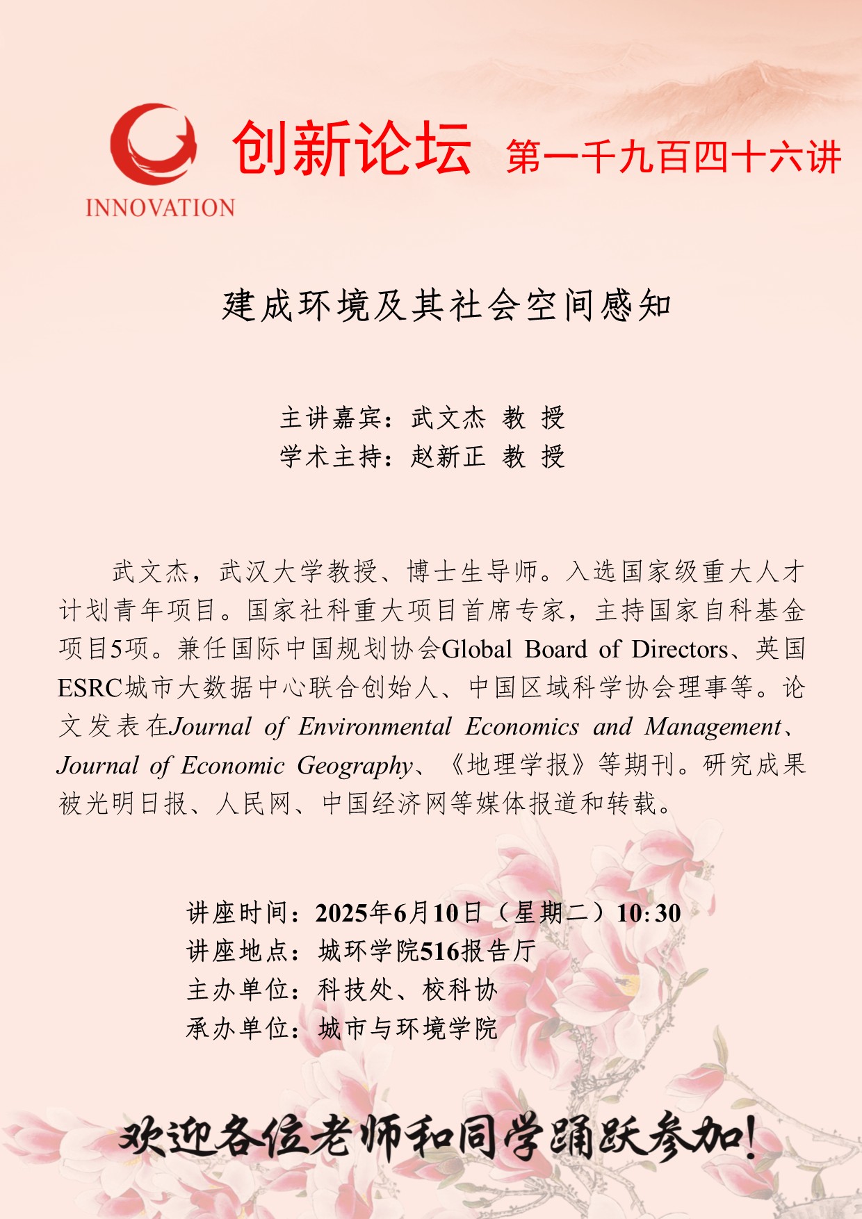 武文杰 教授 开云手机网页版登录入口创新论坛第一千九百四十六讲:建成环境及其社会空间感知 讲座时间 2025年6月10日(星期二)10:30 讲座地点 城环学院516报告厅 讲座人介绍 武文杰 教授 讲座内容