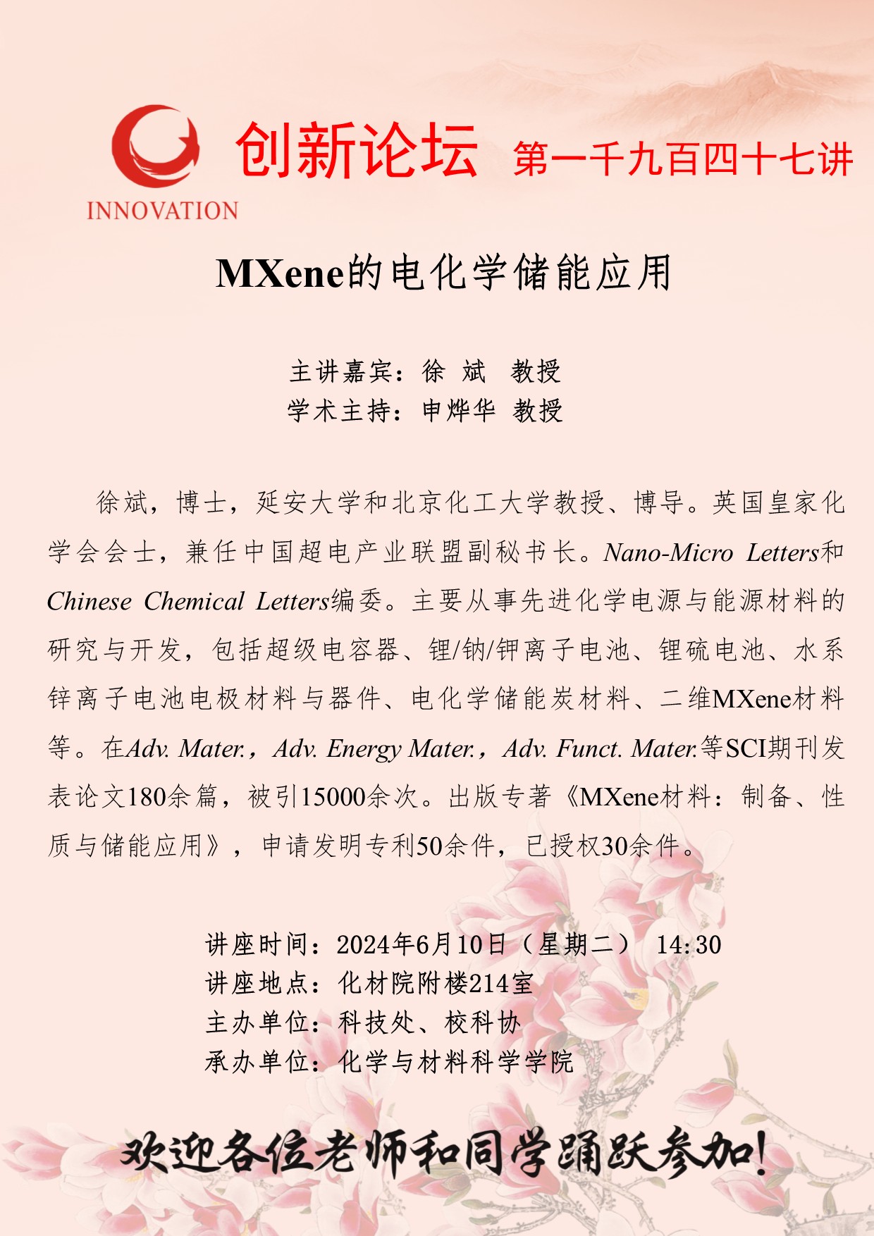 徐斌 教授 开云手机网页版登录入口创新论坛第一千九百四十七讲:MXene的电化学储能应用 讲座时间 2024年6月10日(星期二) 14:30 讲座地点 化材院附楼214室 讲座人介绍 徐斌 教授 讲座内容