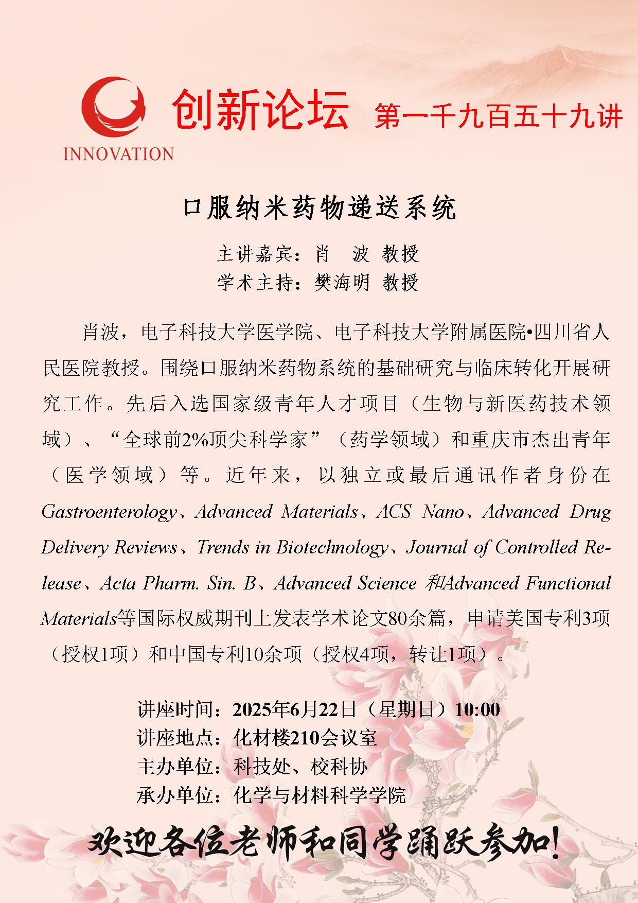 开云手机网页版登录入口创新论坛第一千九百五十九讲: 口服纳米药物递送系统