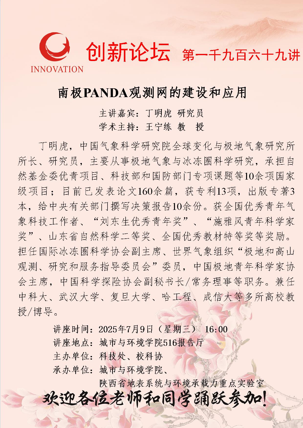 丁明虎 研究员 开云手机网页版登录入口创新论坛第一千九百六十九讲:南极PANDA观测网的建设和应用 讲座时间 2025年7月9日(星期三) 16:00 讲座地点 城市与环境学院516报告厅 讲座人介绍 丁明虎 研究员 讲座内容