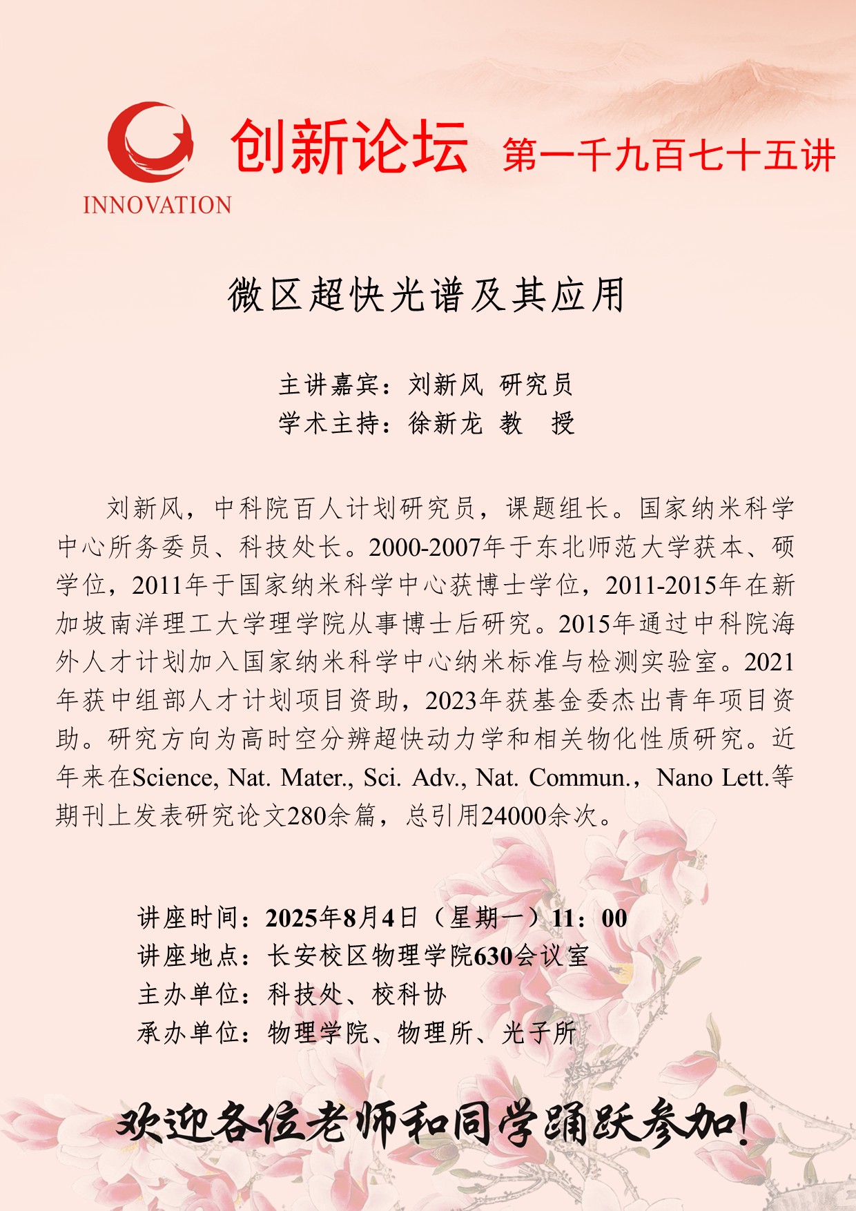 刘新风 研究员 开云手机网页版登录入口创新论坛第一千九百七十五讲:微区超快光谱及其应用 讲座时间 2025年8月4日(星期一) 讲座地点 长安校区物理学院630会议室 讲座人介绍 刘新风 研究员 讲座内容