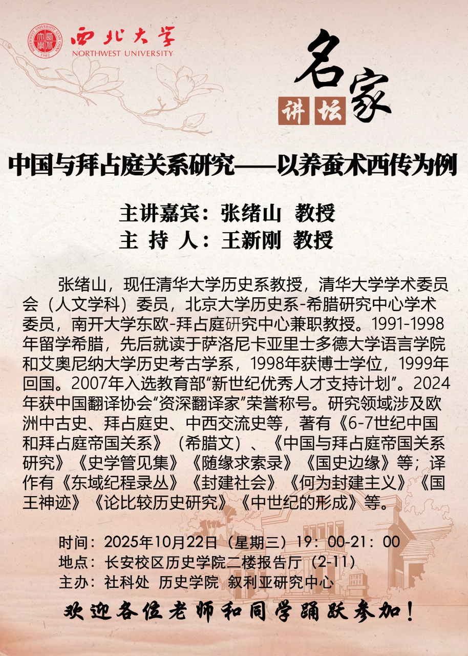 名家讲坛:中国与拜占庭关系研究——以养蚕术西传为例