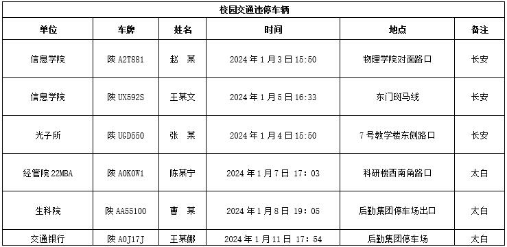 为加强校内道路交通安全管理,规范校内交通秩序,根据《开云手机网页版登录入口校园道路交通管理办法》有关要求,现将2024年1月校园交通违章车辆予以曝光,所在单位负责对本单位违章师生员工进行交通安全教育和日常管理。