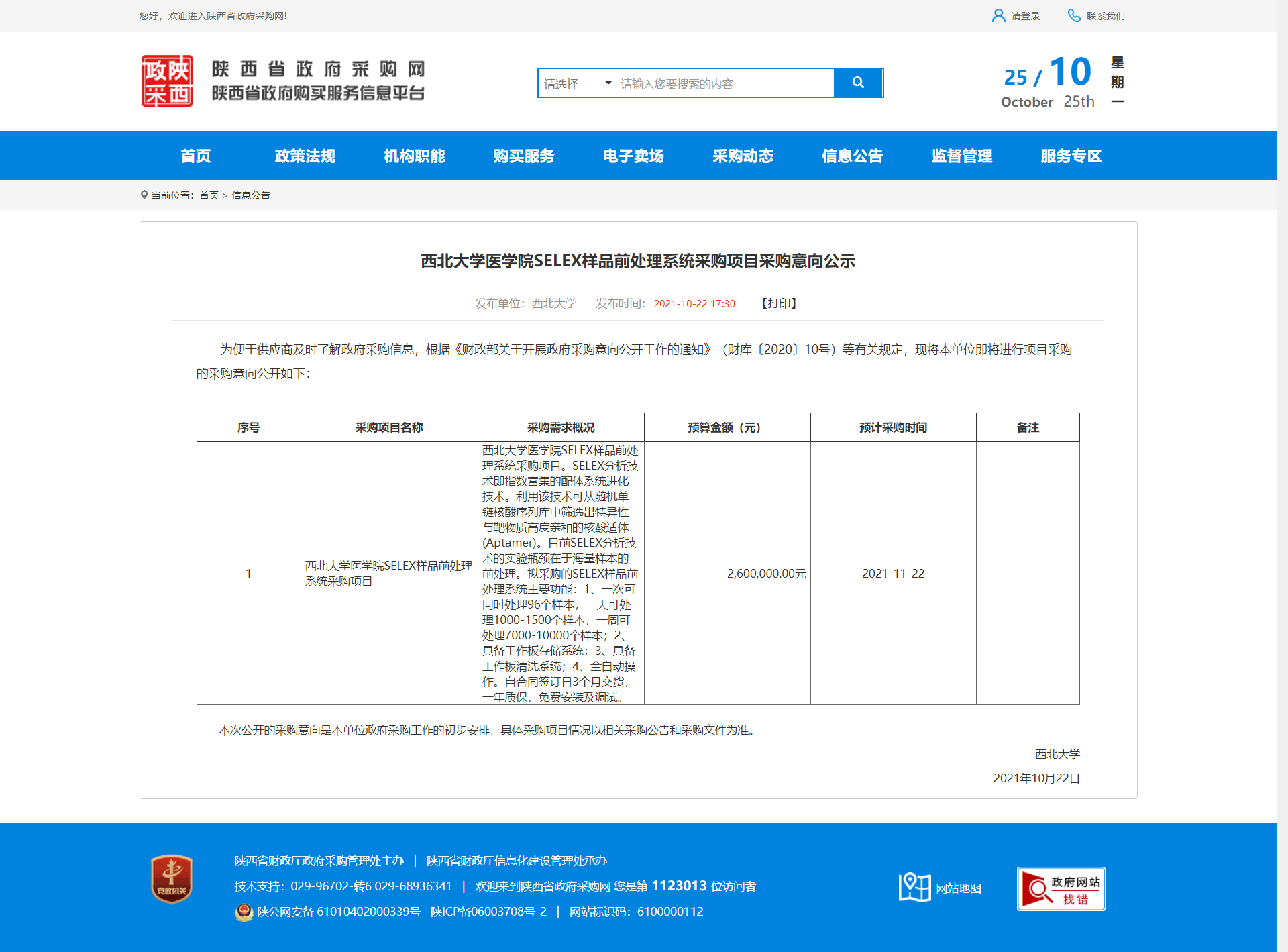 开云手机网页版登录入口医学院SELEX样品前处理系统采购项目采购意向公示 作者: 编辑:薛利娟 时间:2021-10-25 原公告地址:http://www.ccgp-shaanxi.gov.cn/notice/noticeDetail.do?noticeguid=8a85be337c20d0b4017ca7551f1b7c5b