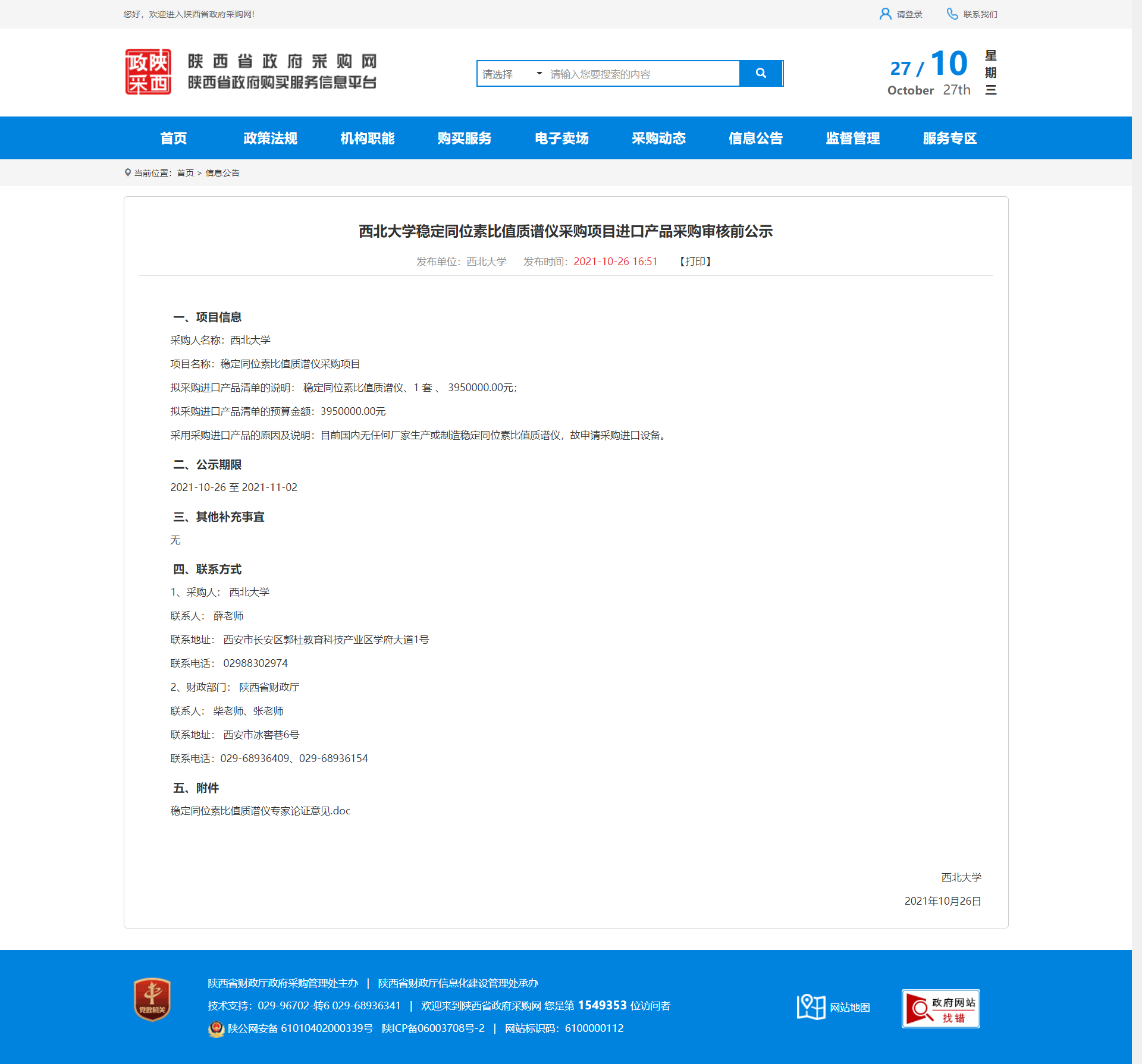 开云手机网页版登录入口稳定同位素比值质谱仪采购项目进口产品采购审核前公示 作者: 编辑:薛利娟 时间:2021-10-27 原公告地址:http://www.ccgp-shaanxi.gov.cn/notice/noticeDetail.do?noticeguid=8a85be317c20d707017cbbc8d6dd7269