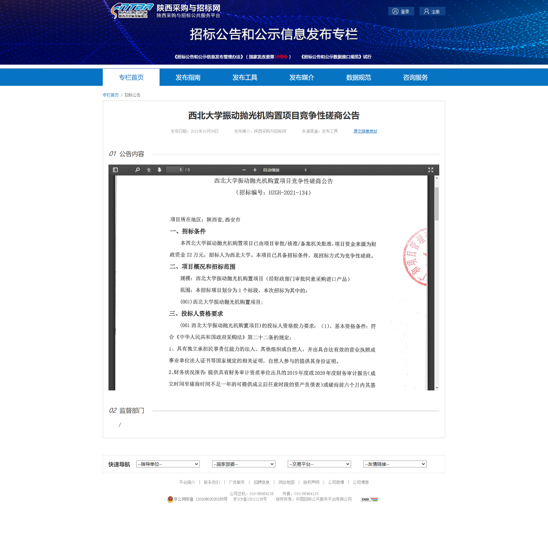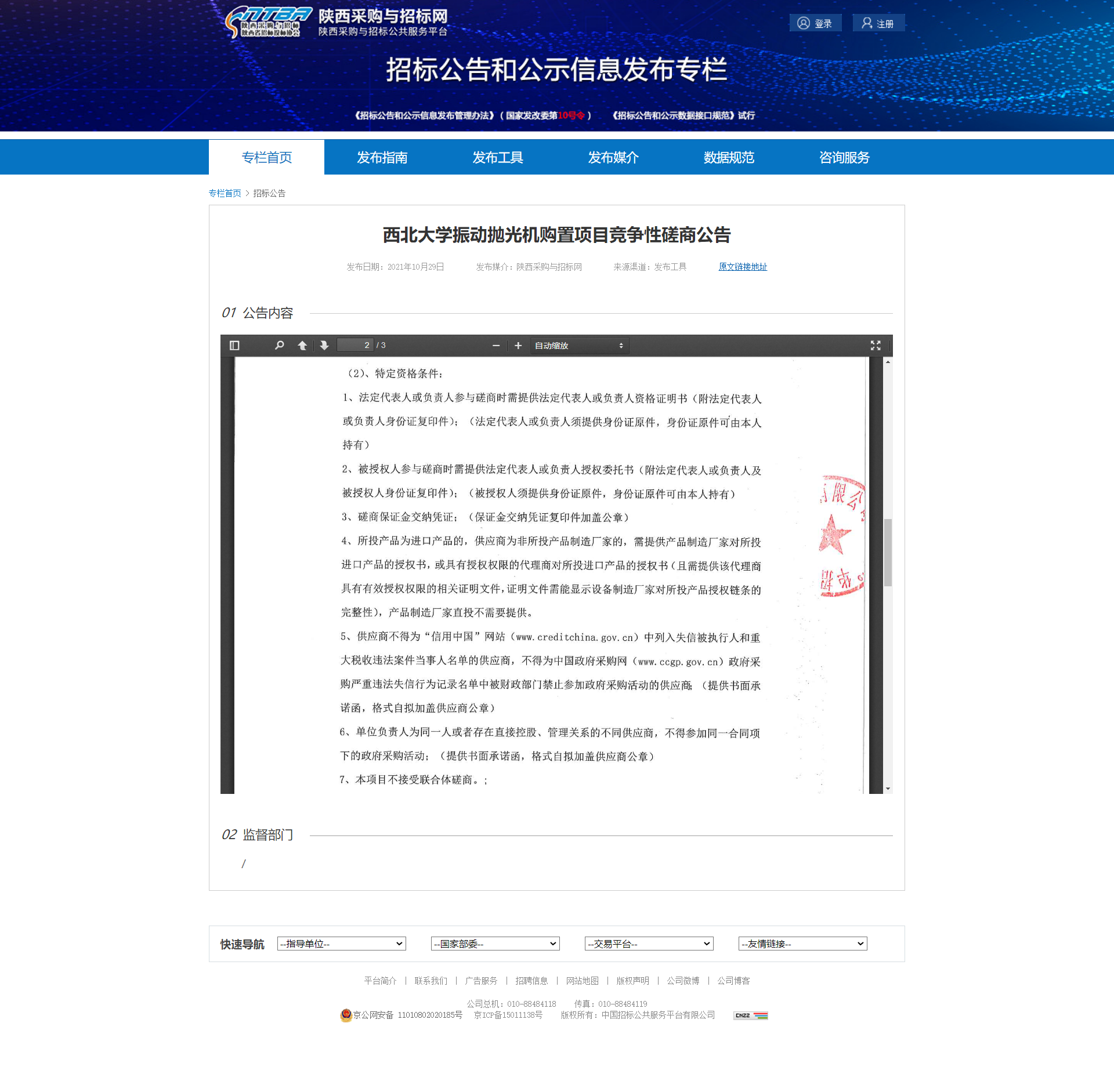 开云手机网页版登录入口振动抛光机购置项目竞争性磋商公告 作者: 编辑:薛利娟 时间:2021-10-29 原公告地址:http://bulletin.sntba.com/biddingBulletin/2021-10-29/358519.html