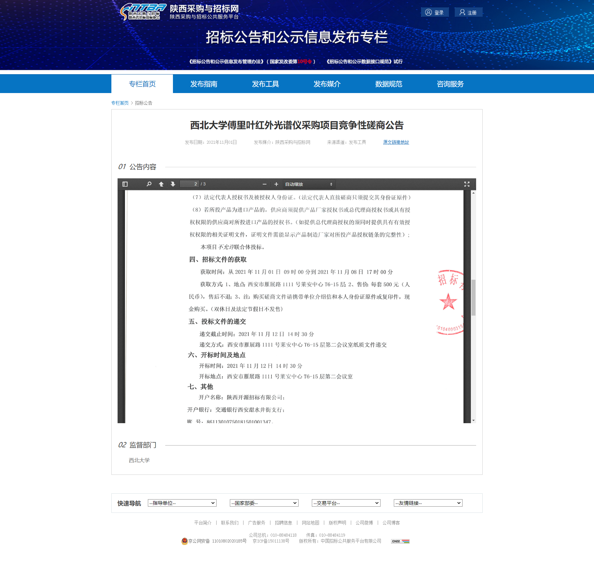 开云手机网页版登录入口傅里叶红外光谱仪采购项目竞争性磋商公告 作者: 编辑:薛利娟 时间:2021-11-01 原公告地址:http://bulletin.sntba.com/biddingBulletin/2021-11-01/359204.html