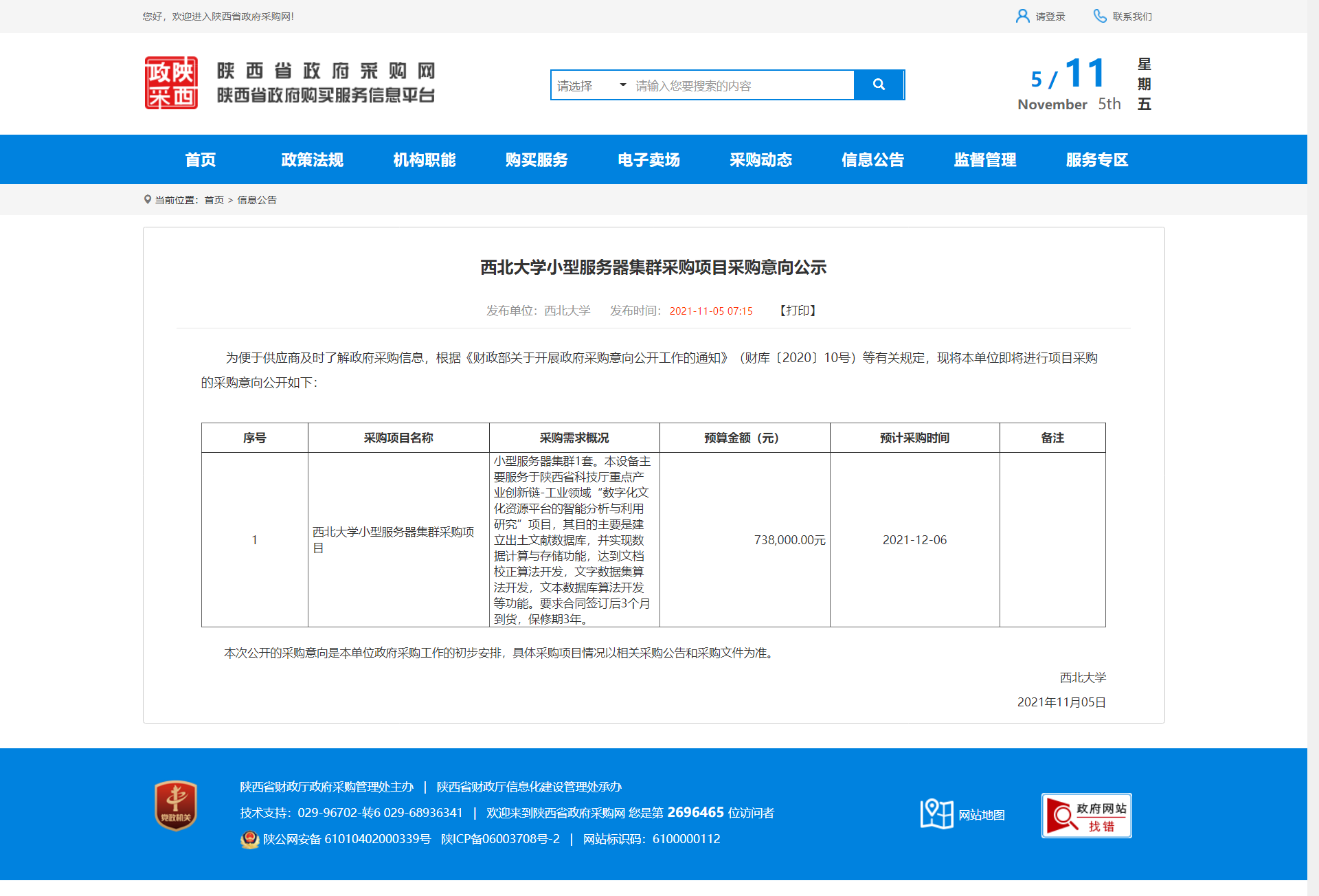 开云手机网页版登录入口小型服务器集群采购项目采购意向公示 作者: 编辑:薛利娟 时间:2021-11-05 原公告地址:http://ccgp-shaanxi.gov.cn/notice/noticeDetail.do?noticeguid=8a85be337cc69df5017ced3a8b59065e