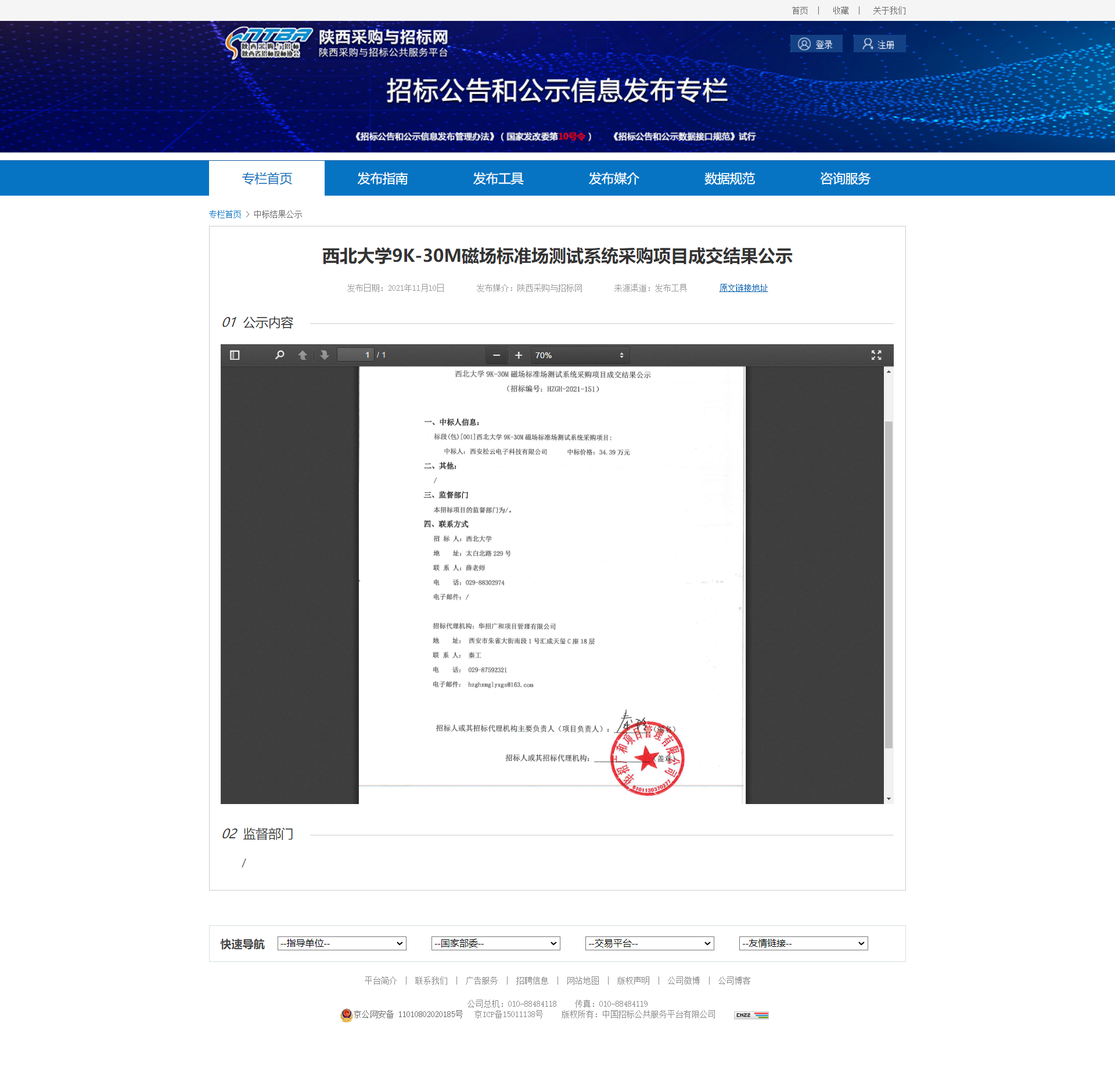 开云手机网页版登录入口9K-30M磁场标准场测试系统采购项目成交结果公示 作者: 编辑:薛利娟 时间:2021-11-11 原公告网址:http://bulletin.sntba.com/resultBulletin/2021-11-10/362788.html