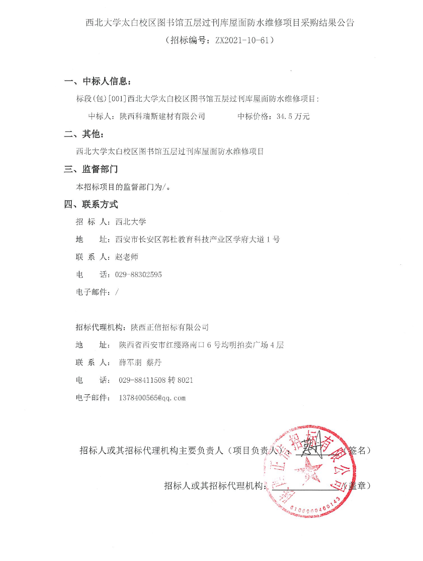 开云手机网页版登录入口太白校区图书馆五层过刊库屋面防水维修项目采购结果公告