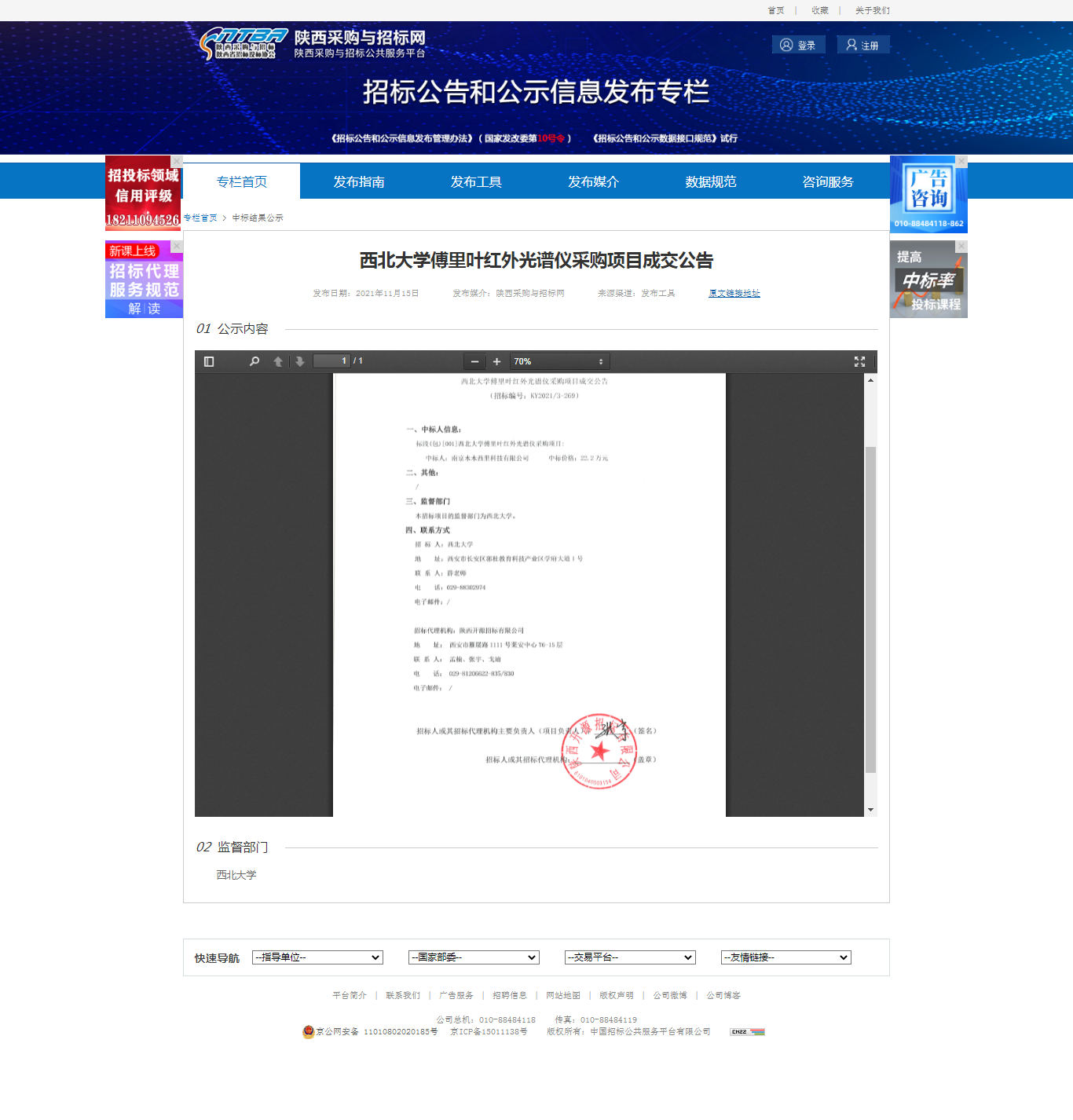 开云手机网页版登录入口傅里叶红外光谱仪采购项目成交公告 作者: 编辑:薛利娟 时间:2021-11-15 原公告网址:http://bulletin.sntba.com/resultBulletin/2021-11-15/363971.html