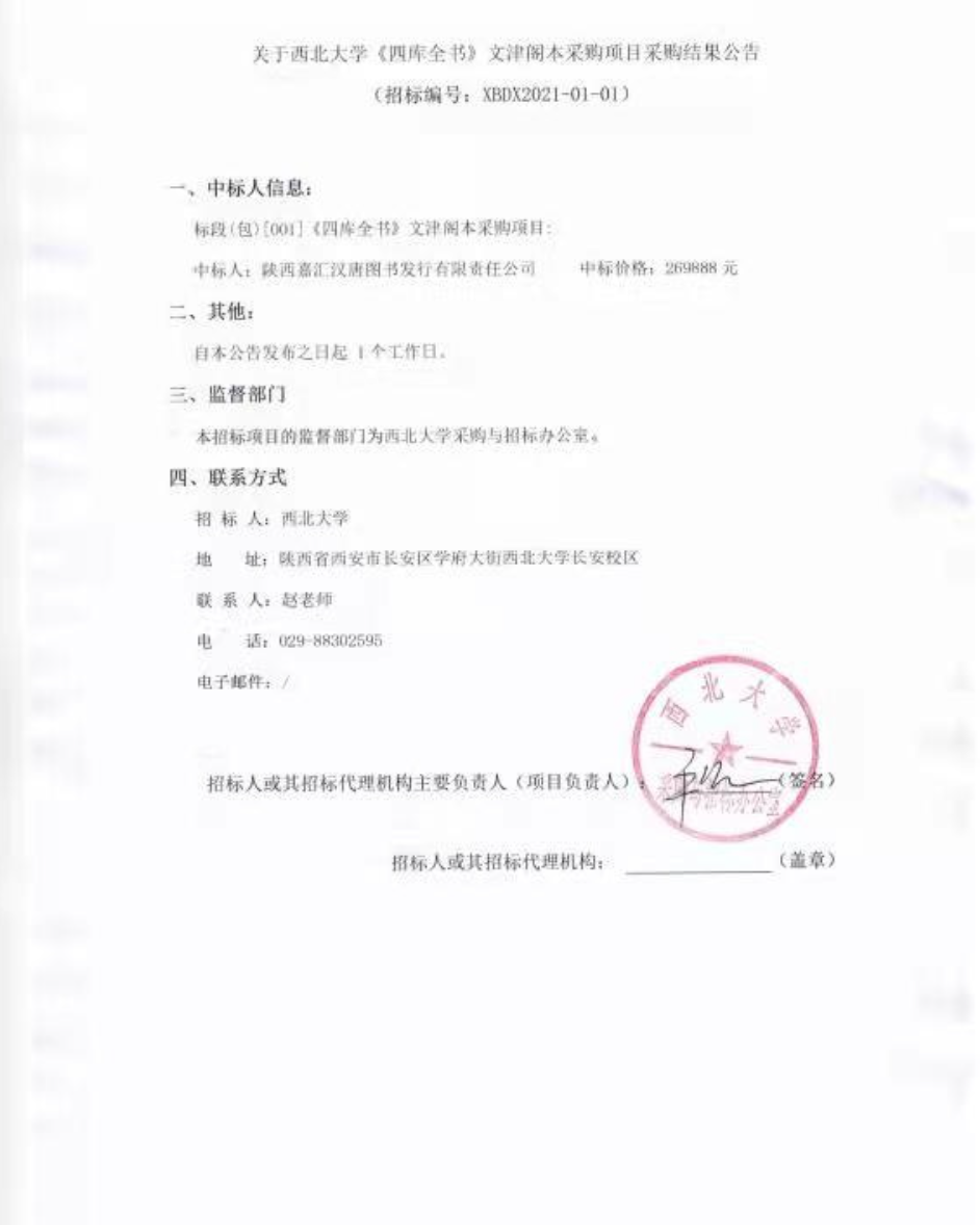 关于开云手机网页版登录入口《四库全书》文津阁本采购项目成交结果公告