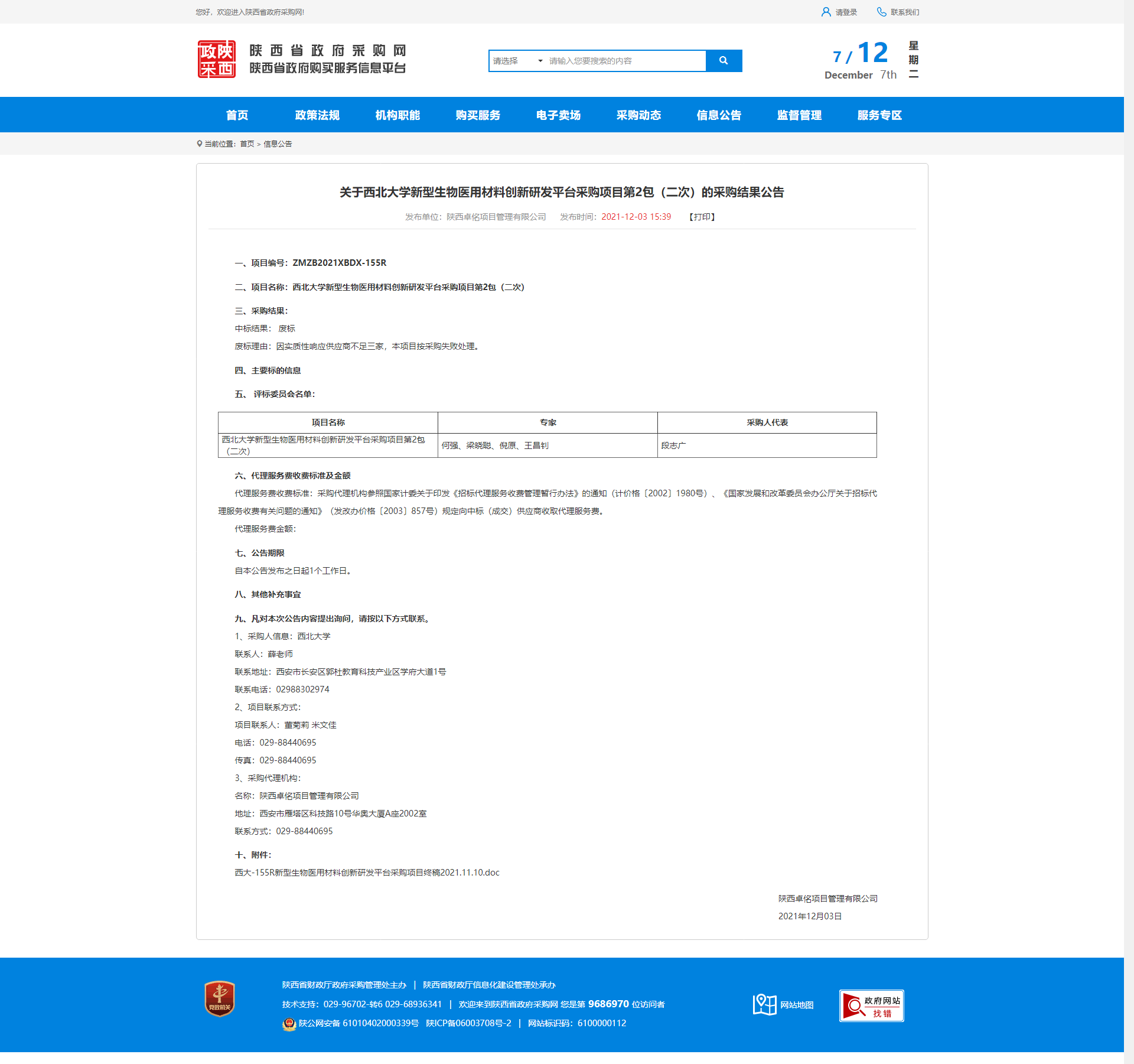 关于开云手机网页版登录入口新型生物医用材料创新研发平台采购项目第2包(二次)的采购结果公告 作者: 编辑:薛利娟 时间:2021-12-07 原公告链接:http://www.ccgp-shaanxi.gov.cn/notice/noticeDetail.do?noticeguid=8a85be347d6a75c8017d7f38c86a62bc