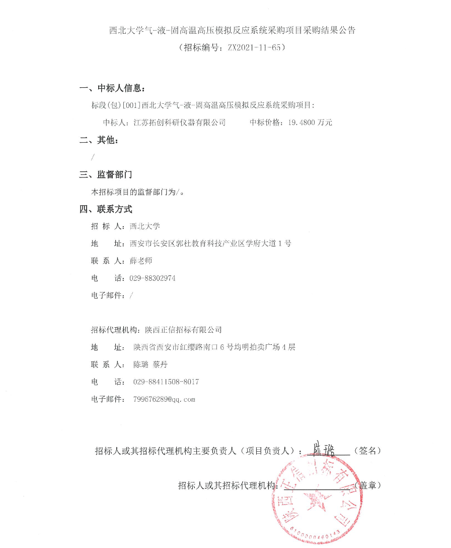 开云手机网页版登录入口气-液-固高温高压模拟反应系统采购项目采购结果公告