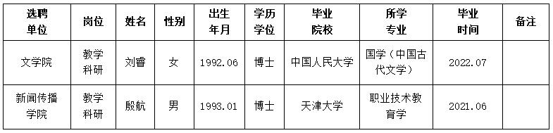 经用人单位推荐,人力资源部审查,学校教学督导及院系相关专家考核,开云手机网页版登录入口拟确定下列人员来校工作。本着公平、公正、公开的原则,现将本次拟选聘人员基本情况公示如下: