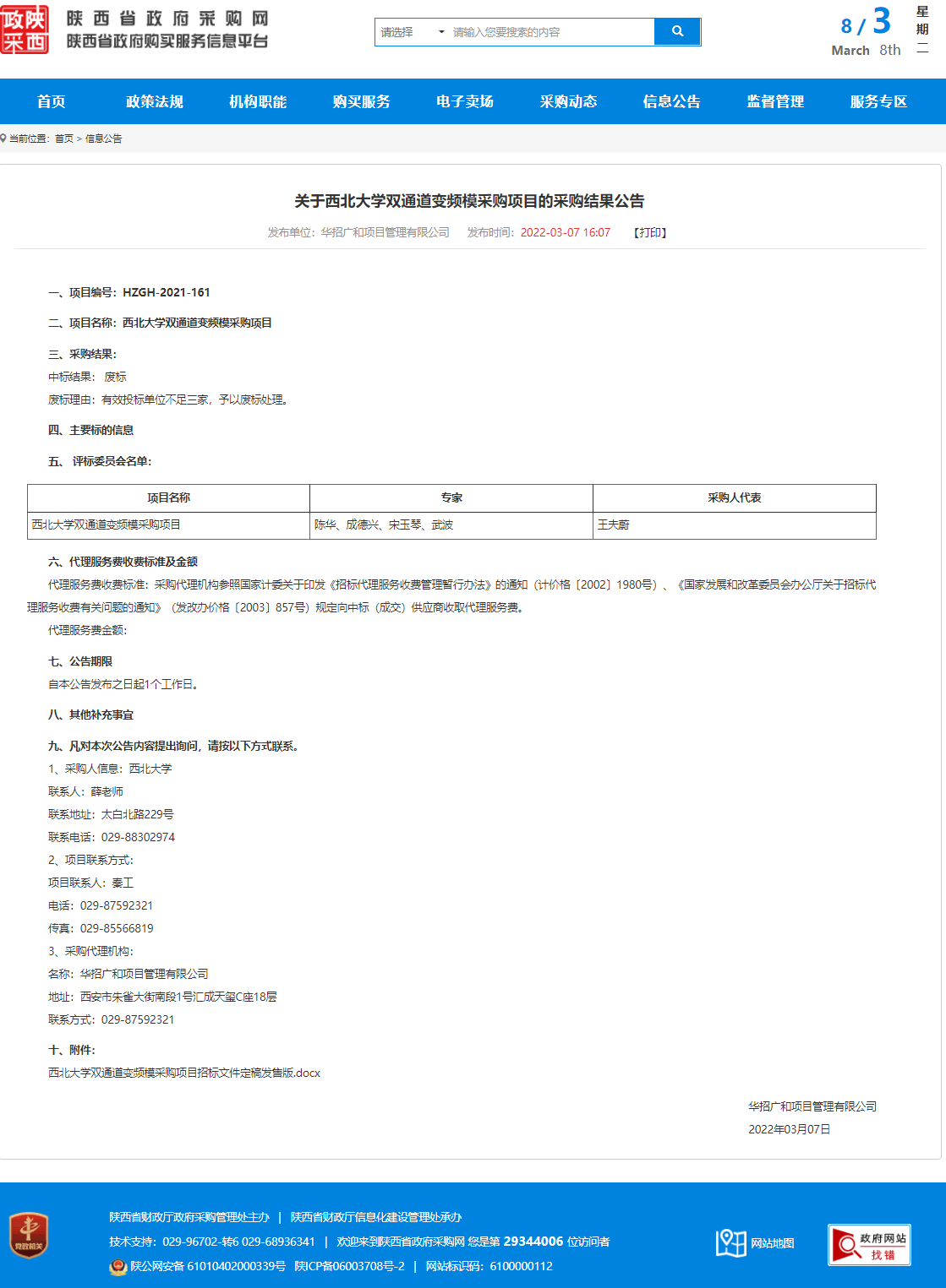 关于开云手机网页版登录入口双通道变频模采购项目的采购结果公告