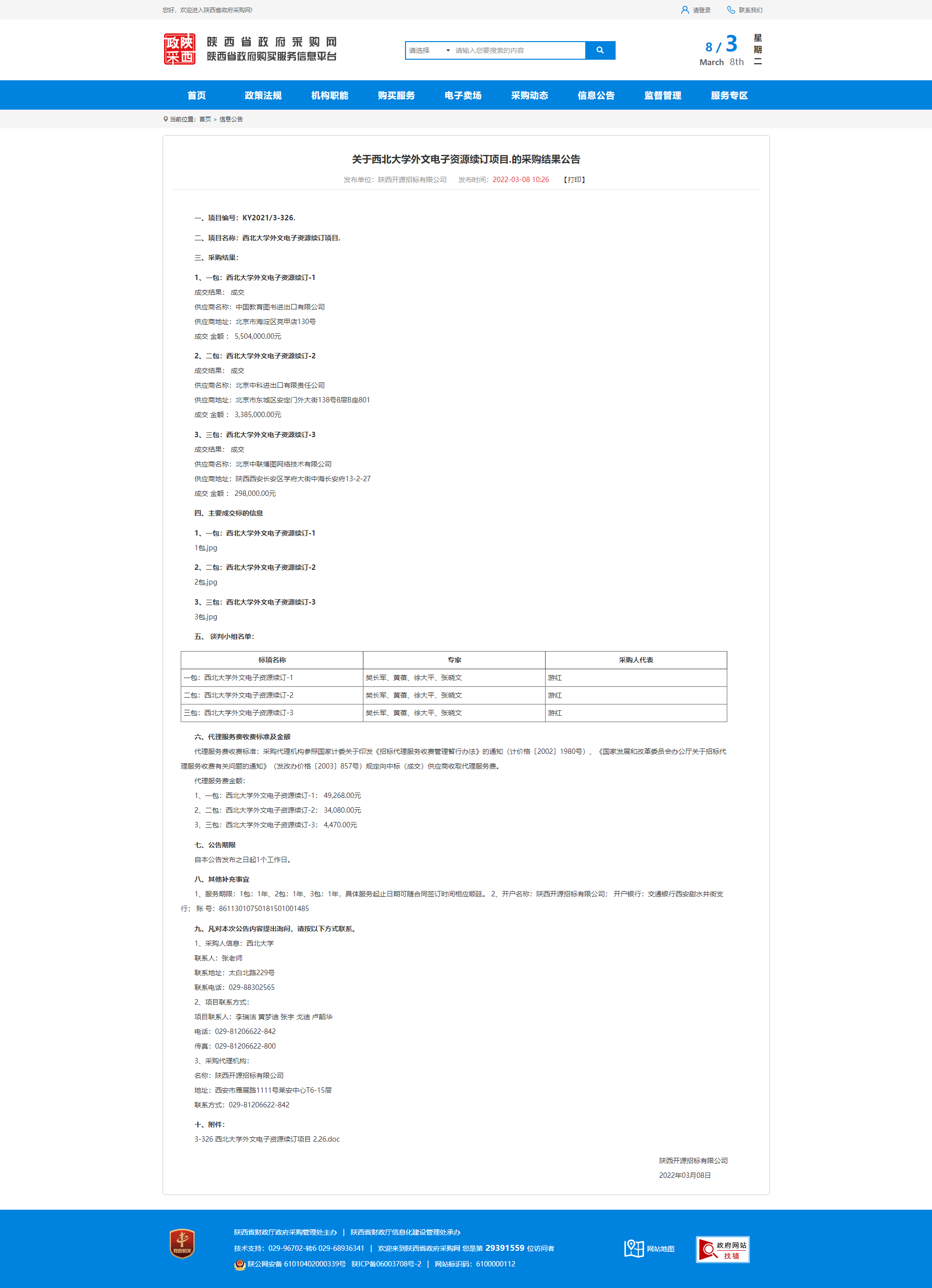 关于开云手机网页版登录入口外文电子资源续订项目的采购结果公告