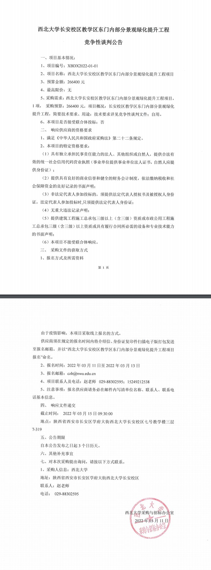 开云手机网页版登录入口长安校区教学区东门内部分景观绿化提升工程竞争性谈判公告