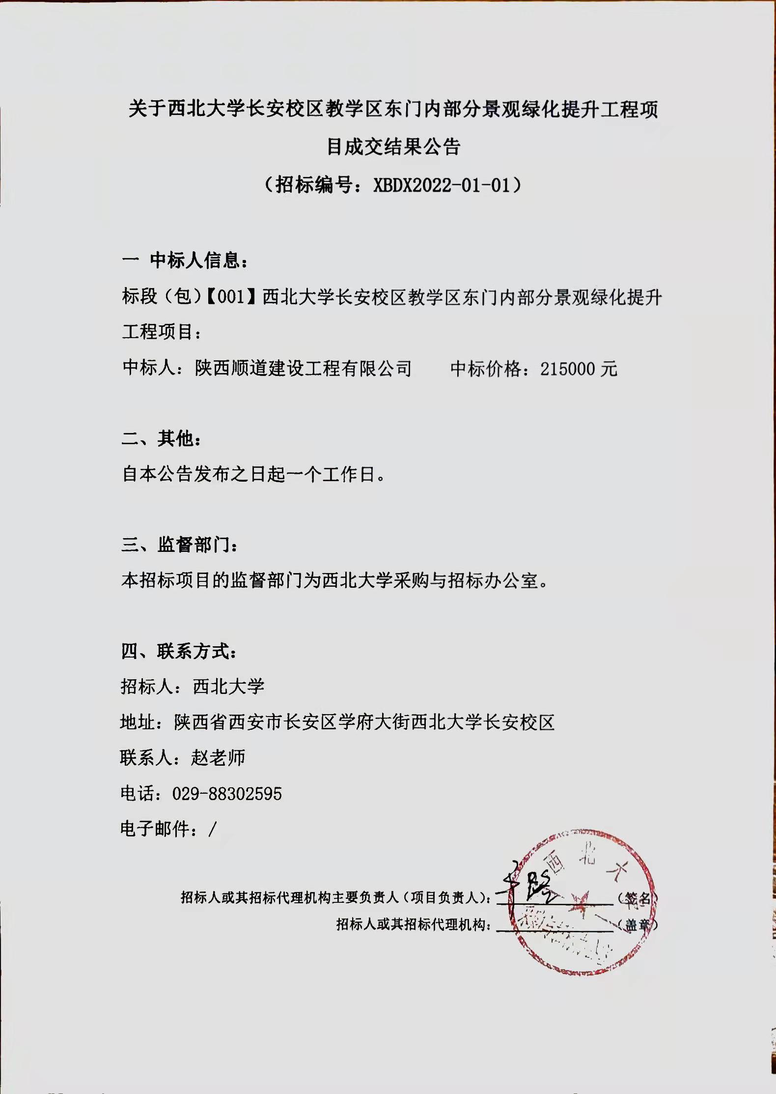 关于开云手机网页版登录入口长安校区教学区东门内部分景观绿化提升工程项目成交结果公告