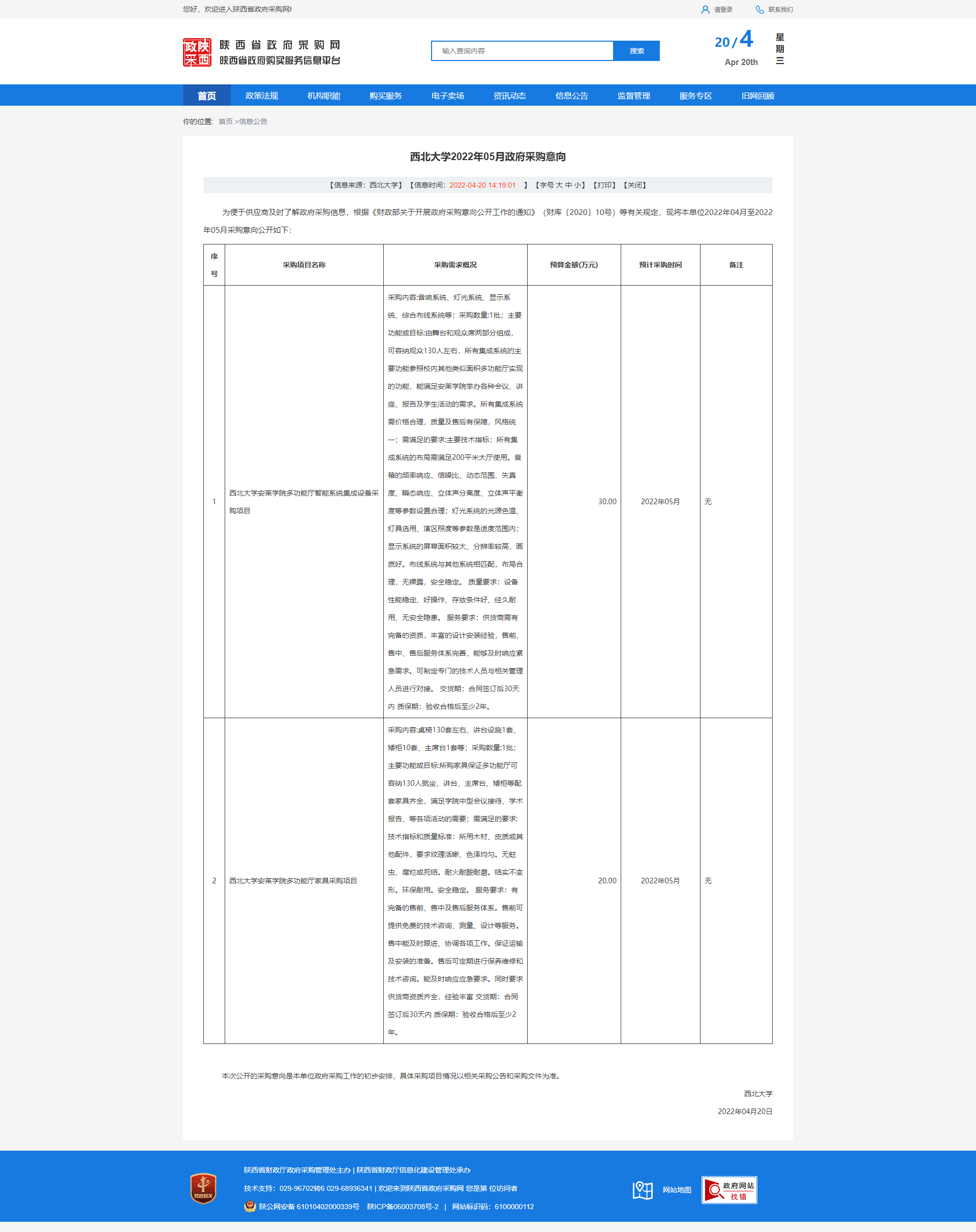 开云手机网页版登录入口2022年05月政府采购意向 作者: 编辑:薛利娟 时间:2022-04-20 原公告链接:http://www.ccgp-shaanxi.gov.cn/freecms/site/shaanxi/ggxx/info/2022/8a69c6fa803f5d71018044f8ef4371e6.html?noticeType=59¬iceId=ec2f07d2-c071-11ec-9a8e-08c0eb20c666