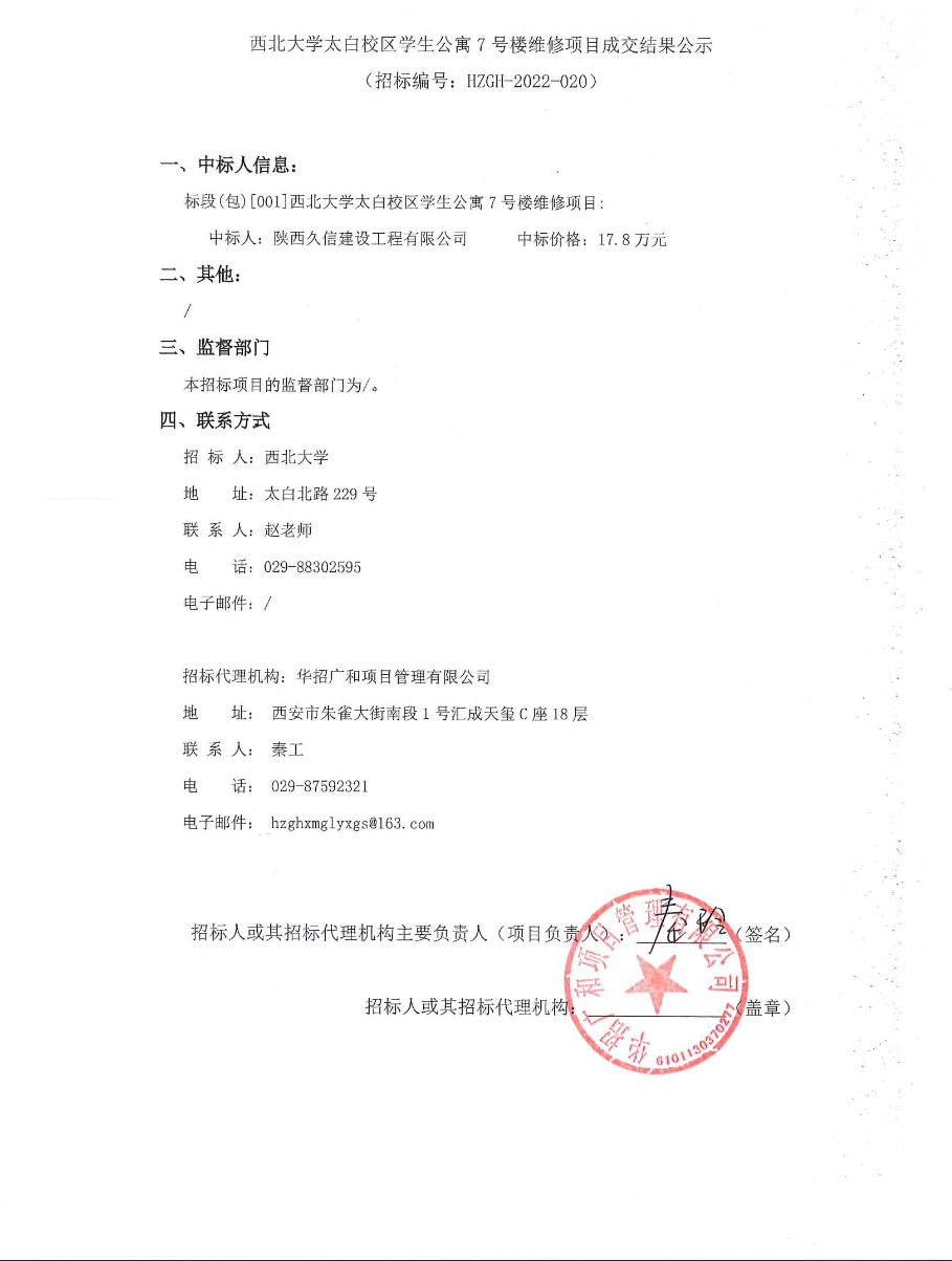 开云手机网页版登录入口太白校区学生公寓7号楼维修项目成交结果公示