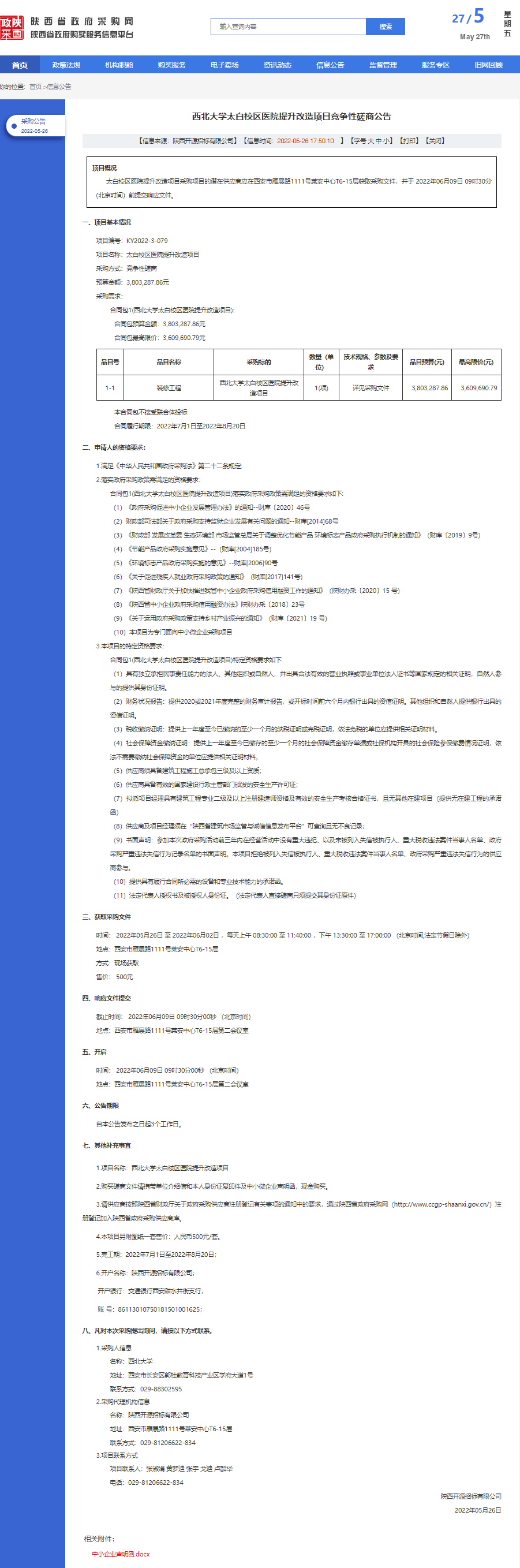 开云手机网页版登录入口太白校区医院提升改造项目竞争性磋商公告