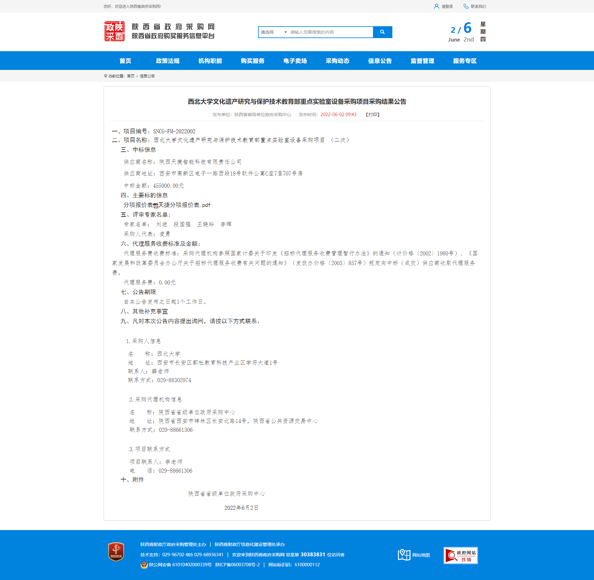 开云手机网页版登录入口文化遗产研究与保护技术教育部重点实验室设备采购项目采购结果公告
