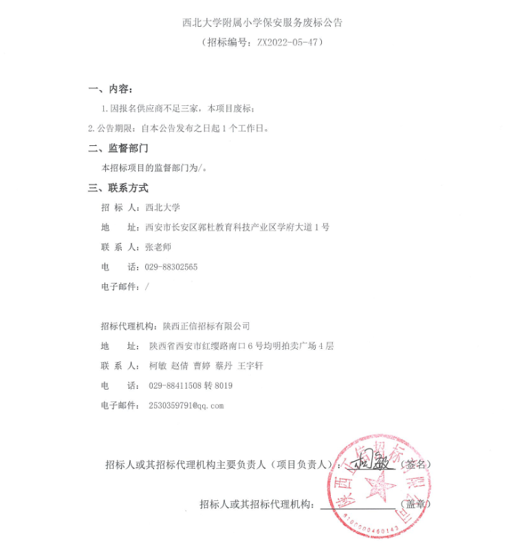 关于开云手机网页版登录入口附属小学保安服务废标公告