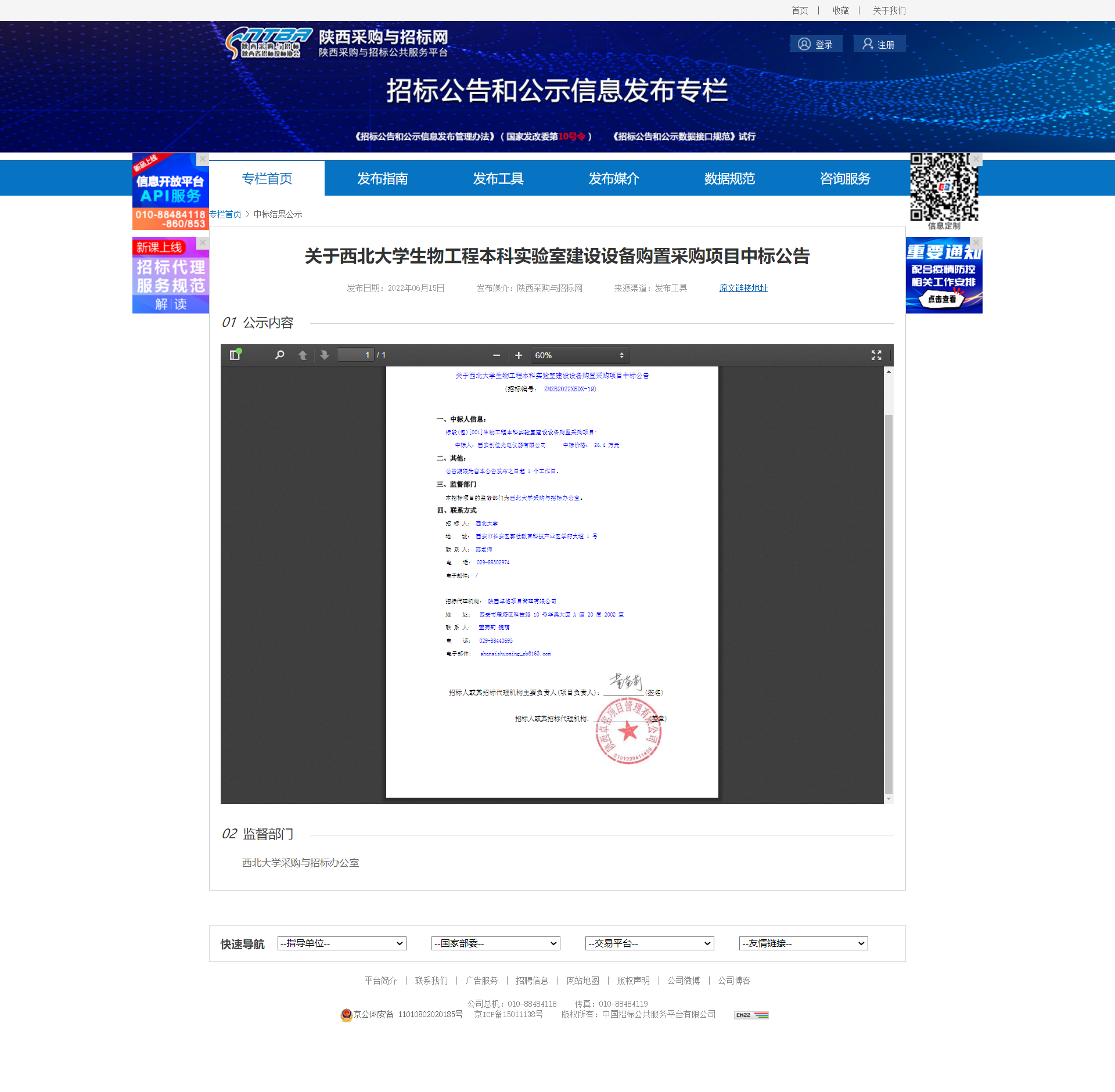 关于开云手机网页版登录入口生物工程本科实验室建设设备购置采购项目中标公告 作者: 编辑:薛利娟 时间:2022-06-15 原公告链接:http://bulletin.sntba.com/resultBulletin/2022-06-15/433887.html