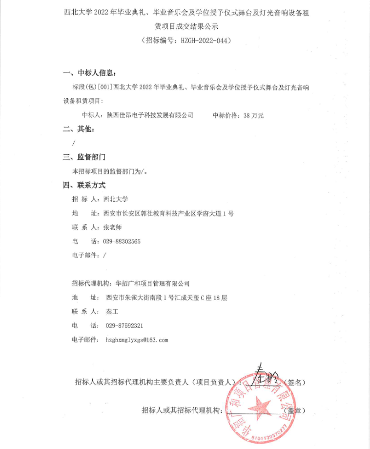 关于开云手机网页版登录入口2022年毕业典礼、毕业音乐会及学位授予仪式舞台及灯光音响设备租赁项目成交结果公示