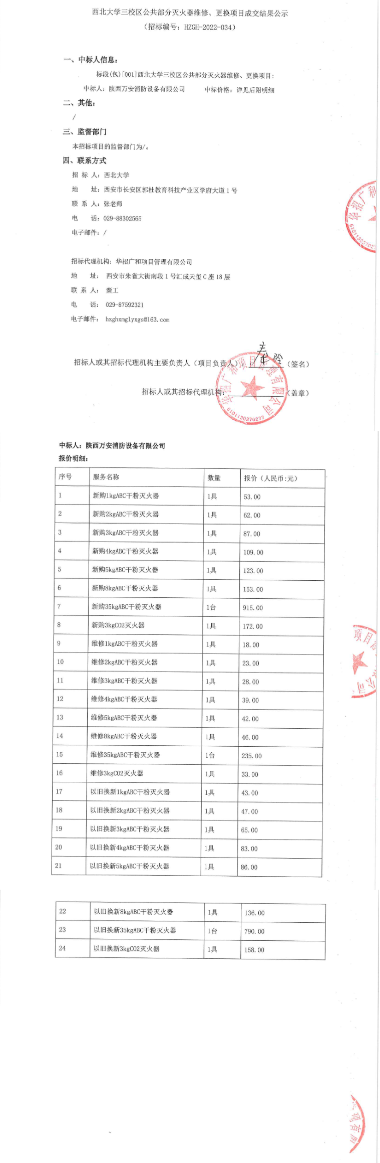 关于开云手机网页版登录入口三校区公共部分灭火器维修、更换项目成交结果公示