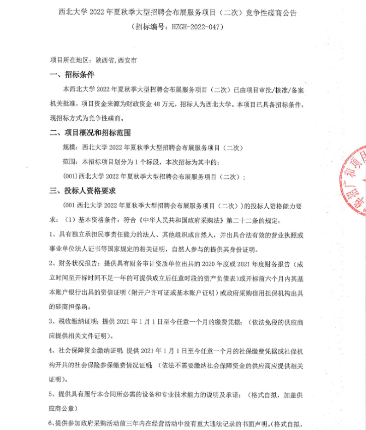 开云手机网页版登录入口2022年夏秋季大型招聘会布展服务项目(二次)竞争性磋商公告