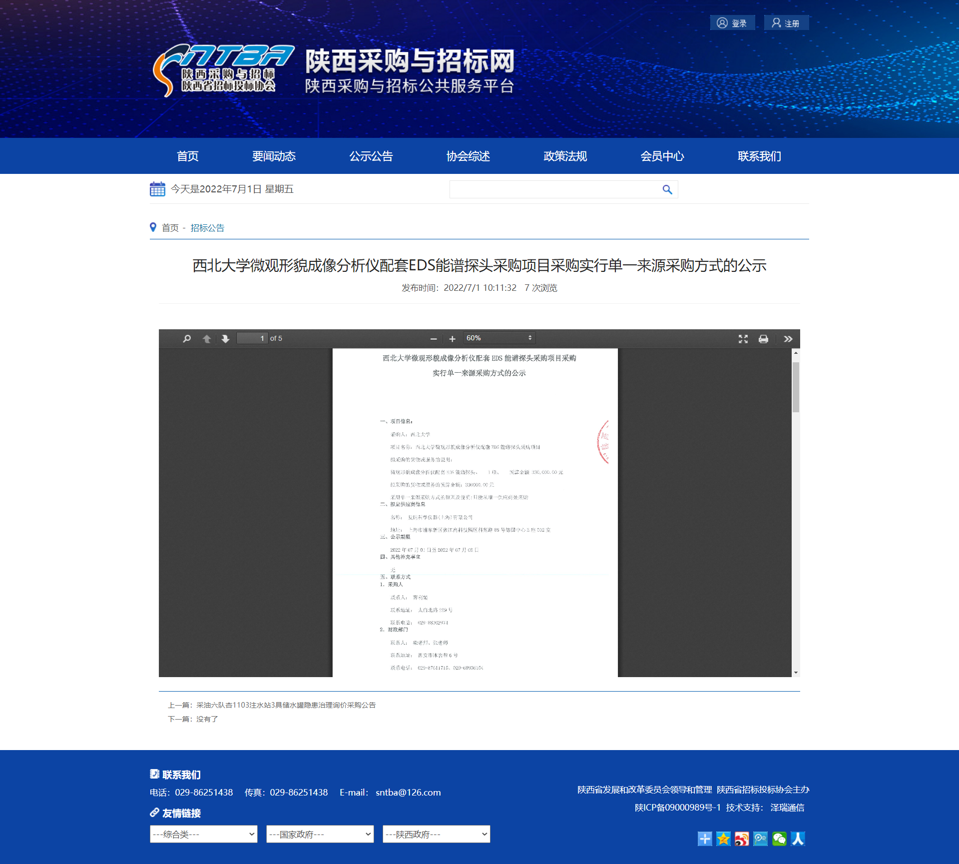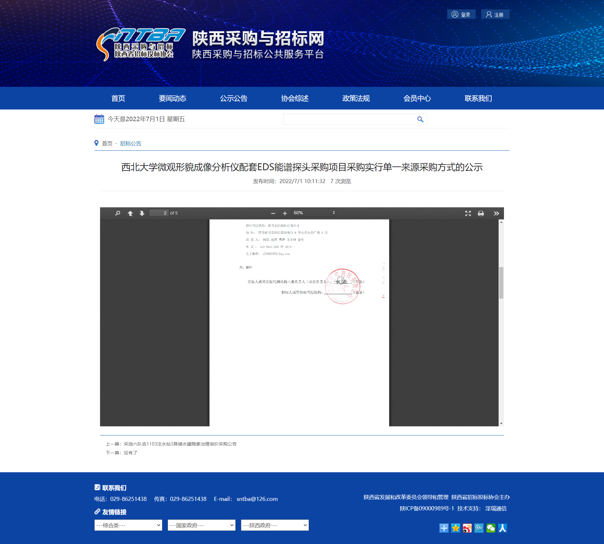 开云手机网页版登录入口微观形貌成像分析仪配套EDS能谱探头采购项目采购实行单一来源采购方式的公示 作者: 编辑:采购与招标办公室 时间:2022-07-01 原公告链接:http://www.sntba.com/website/gg_show.aspx?id=216192