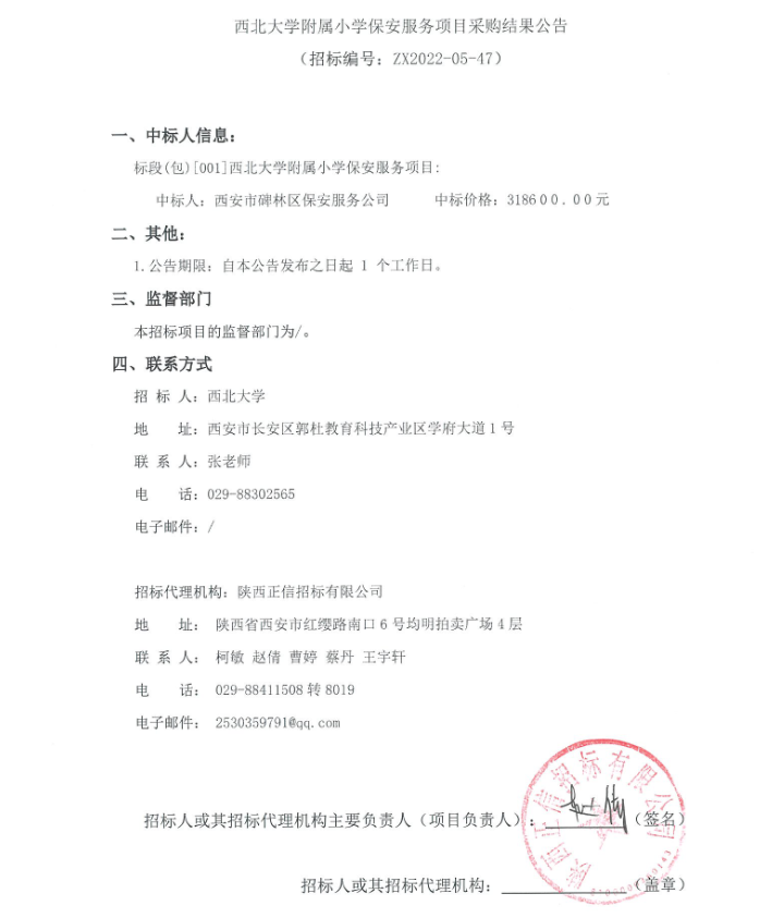 关于开云手机网页版登录入口附属小学保安服务项目采购结果公告