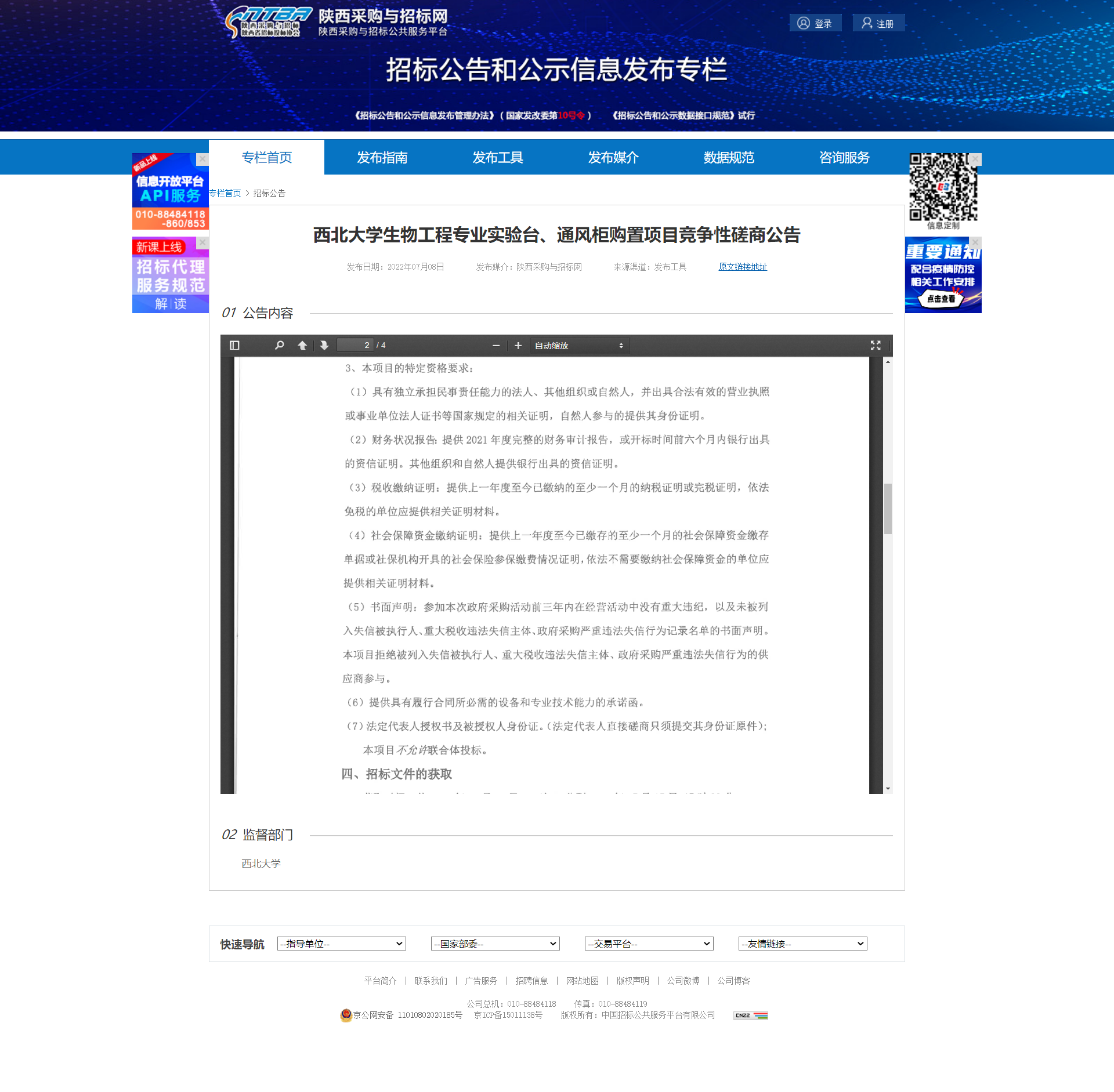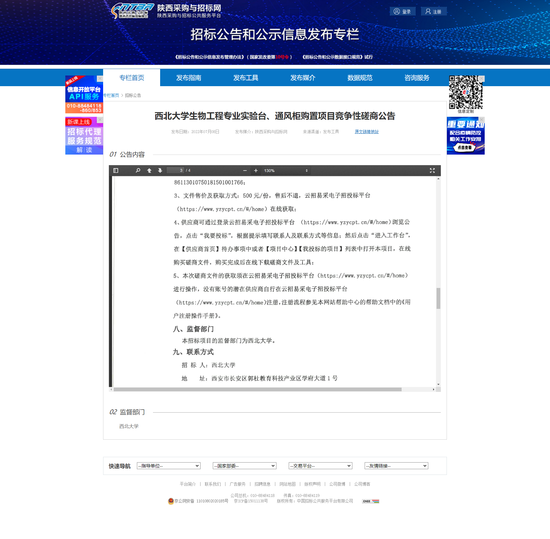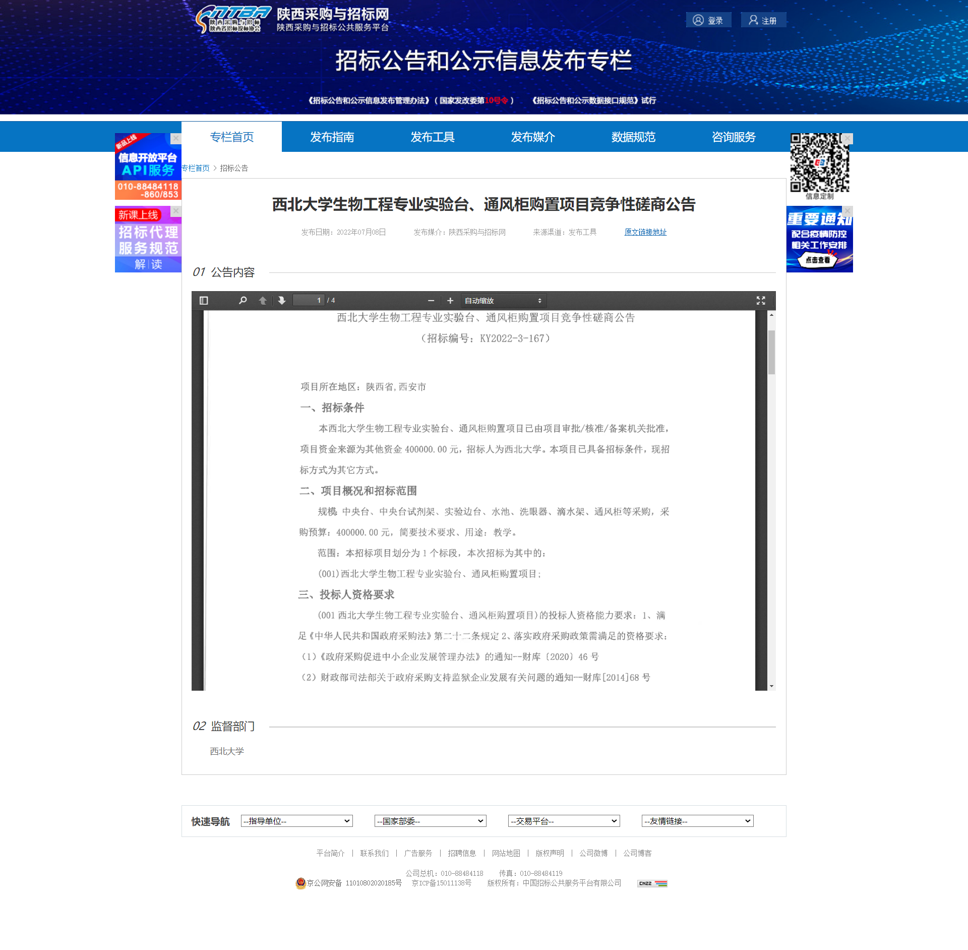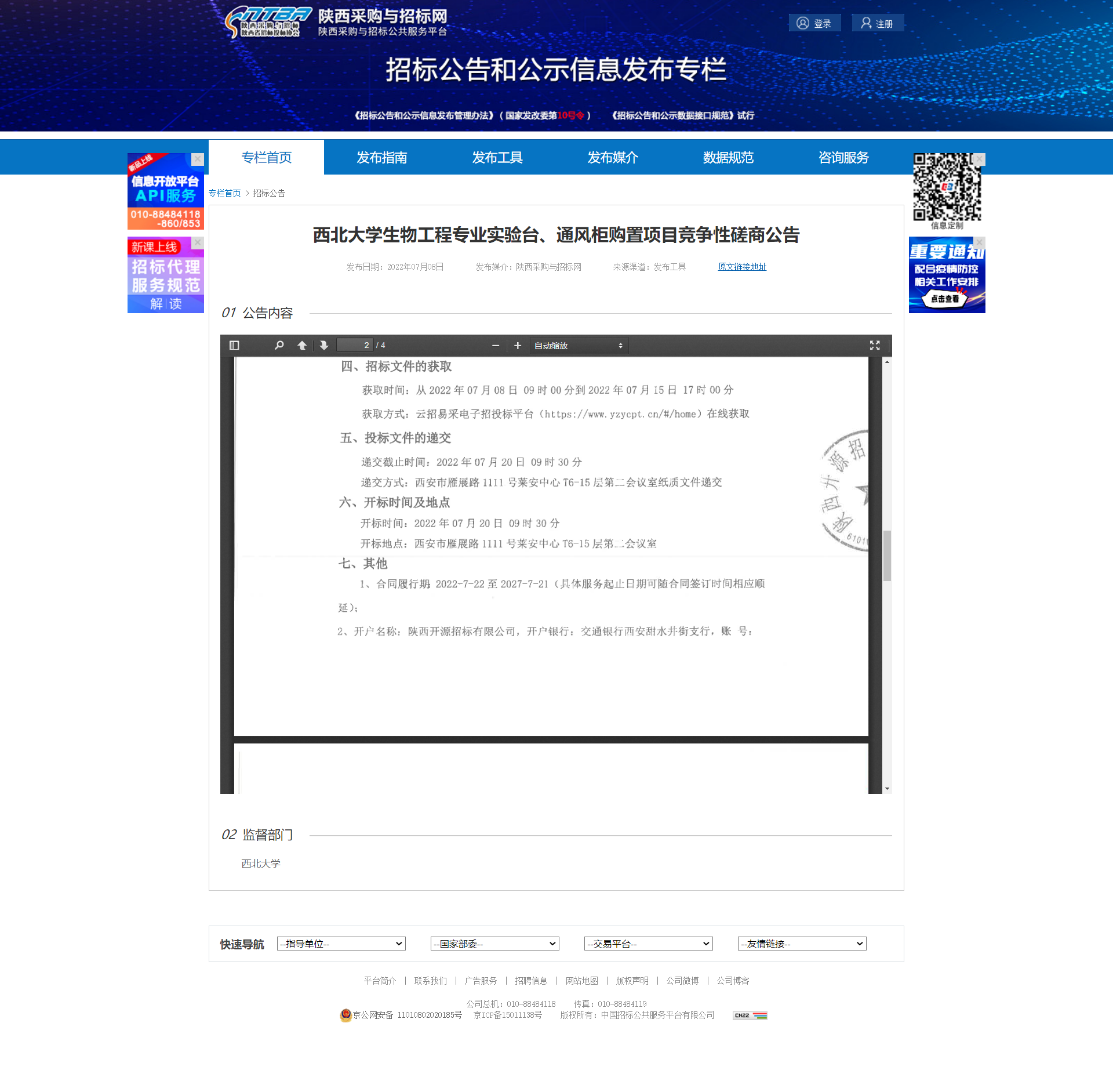 开云手机网页版登录入口生物工程专业实验台、通风柜购置项目竞争性磋商公告 作者: 编辑:薛利娟 时间:2022-07-08 原公告链接:http://bulletin.sntba.com/biddingBulletin/2022-07-08/445112.html