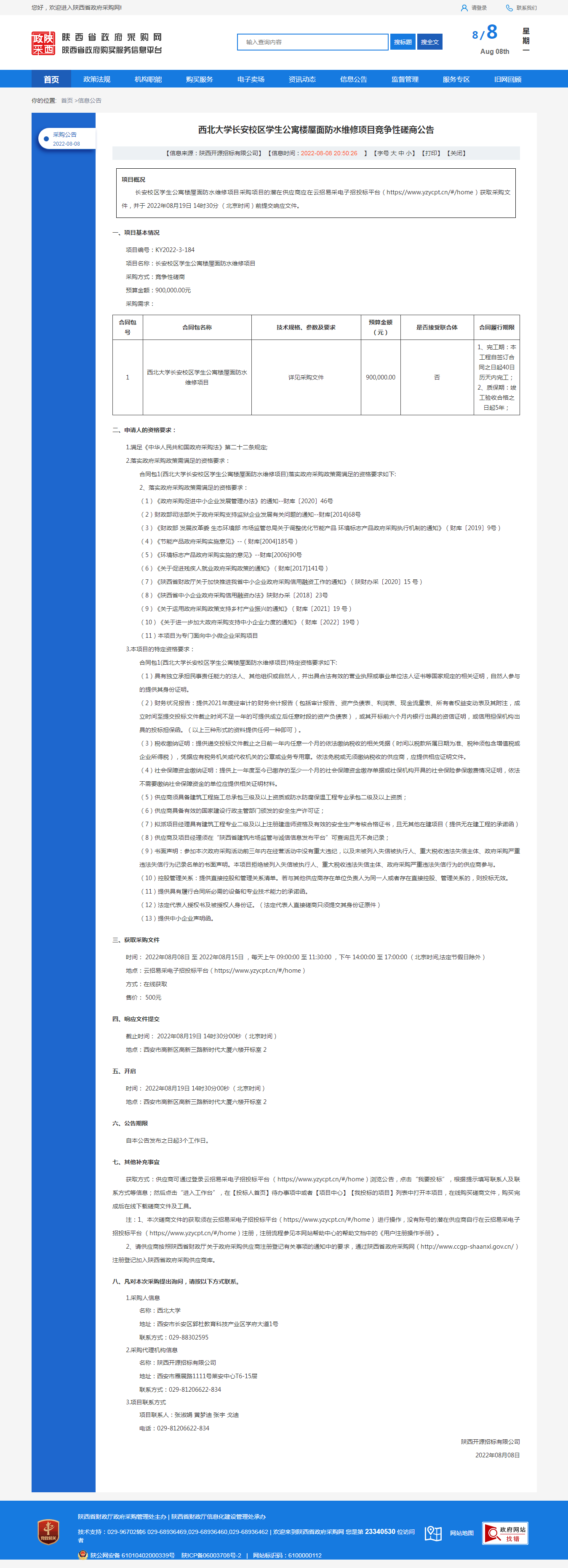 开云手机网页版登录入口长安校区学生公寓楼屋面防水维修项目竞争性磋商公告