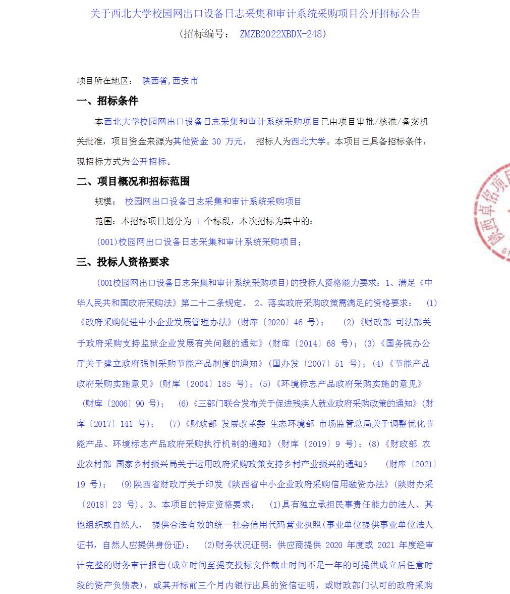 关于开云手机网页版登录入口校园网出口设备日志采集和审计系统采购项目公开招标公告