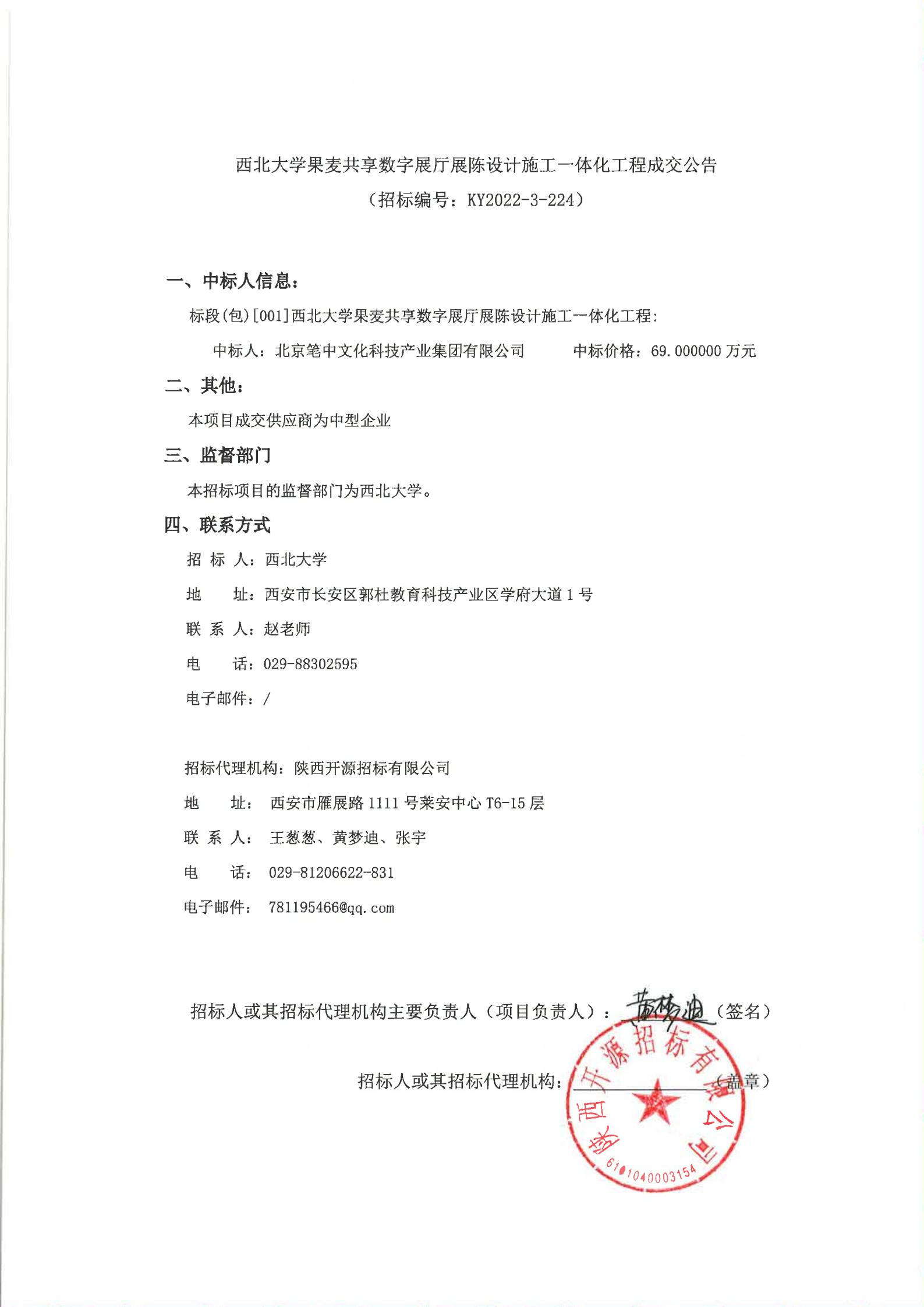 开云手机网页版登录入口果麦共享数字展厅展陈设计施工一体化工程成交公告