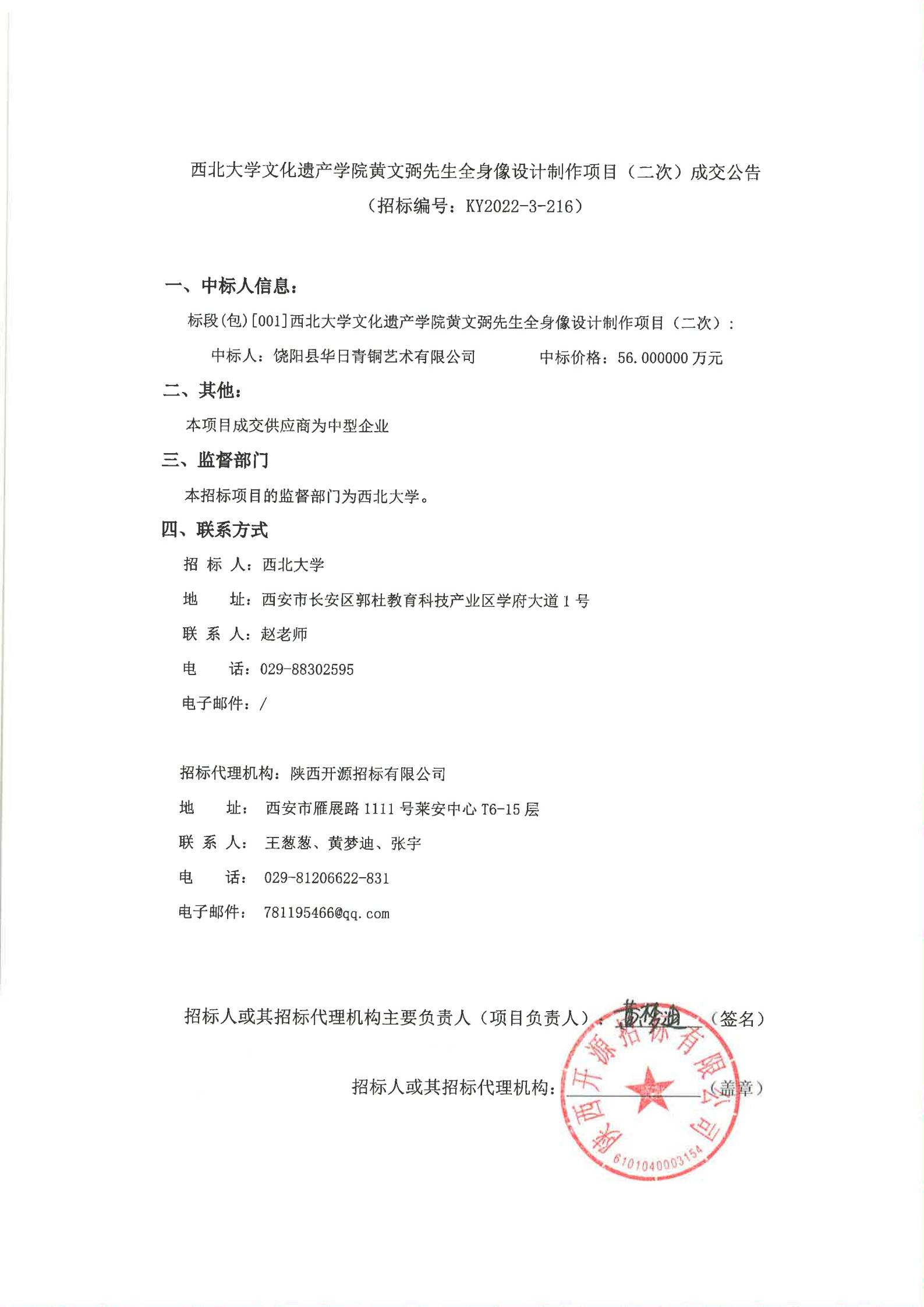 开云手机网页版登录入口文化遗产学院黄文弼先生全身像设计制作项目(二次)成交公告