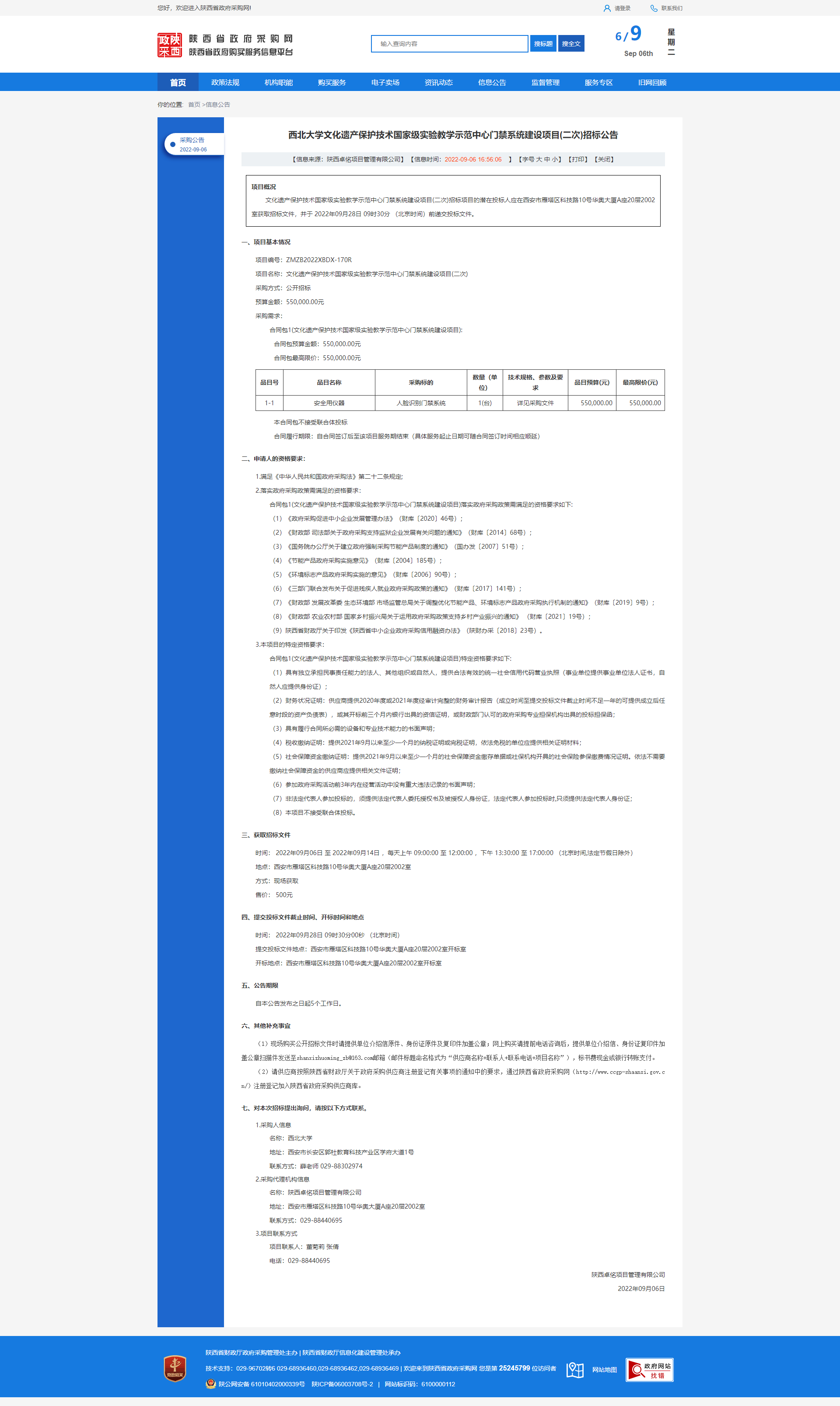 开云手机网页版登录入口文化遗产保护技术国家级实验教学示范中心门禁系统建设项目(二次)招标公告 作者: 编辑:采购与招标办公室 时间:2022-09-06 原公告链接:http://www.ccgp-shaanxi.gov.cn/freecms/site/shaanxi/ggxx/info/2022/8a69c63182a32538018311f9ef2e1370.html?noticeType=001011¬iceId=3d8b61ff-2dc2-11ed-9a8e-08c0eb20c666