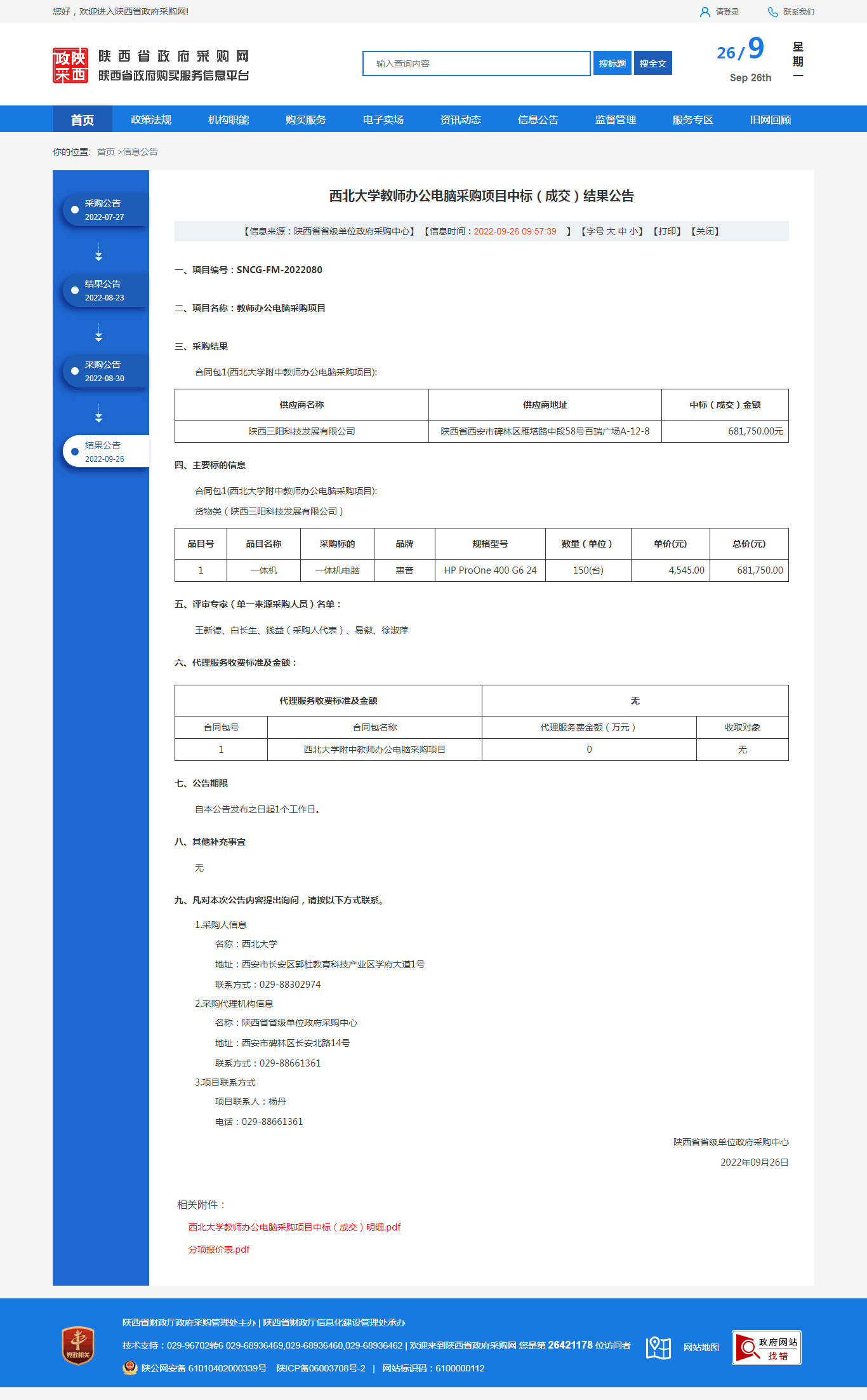 开云手机网页版登录入口教师办公电脑采购项目中标(成交)结果公告 作者: 编辑:采购与招标办公室 时间:2022-09-26 原公告链接:http://www.ccgp-shaanxi.gov.cn/freecms/site/shaanxi/ggxx/info/2022/8a69c59682a320a4018377493e6d3f72.html?noticeType=001021¬iceId=2261c8bd-3d3f-11ed-9a8e-08c0eb20c666