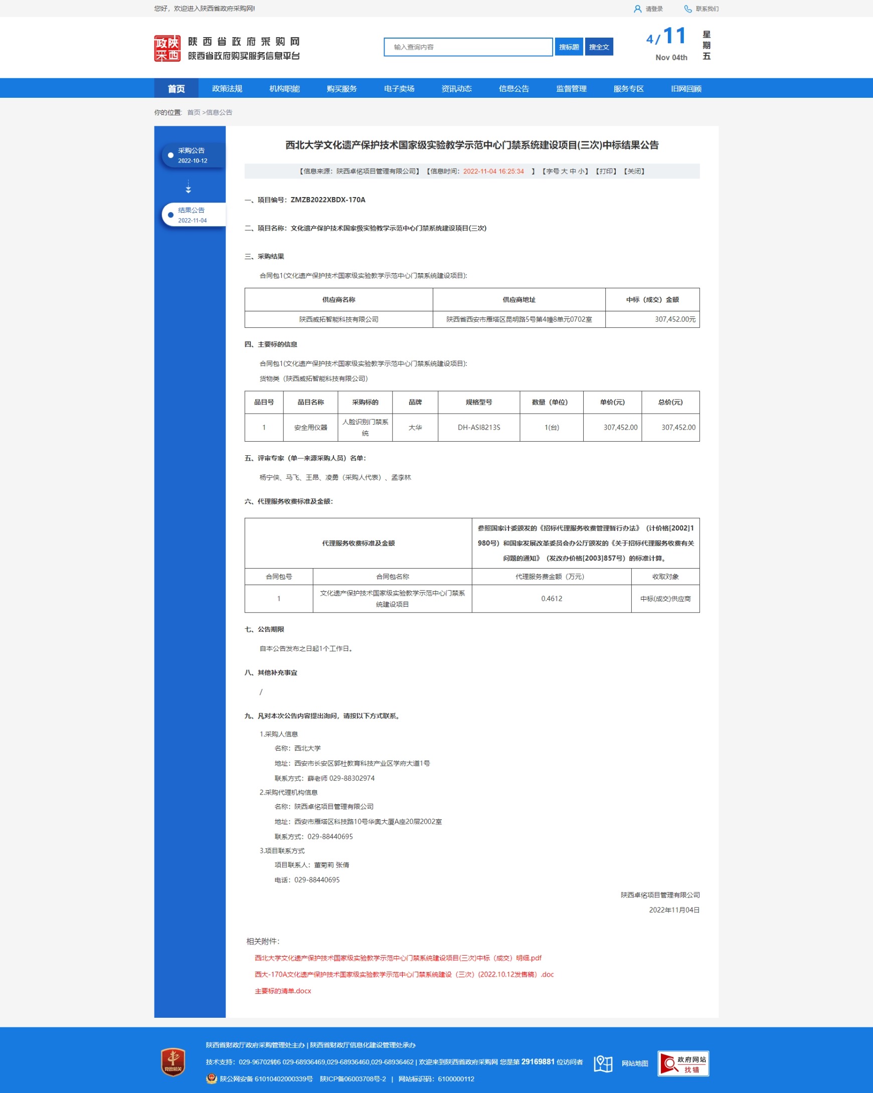 开云手机网页版登录入口文化遗产保护技术国家级实验教学示范中心门禁系统建设项目(三次)中标结果公告 作者: 编辑:采购与招标办公室 时间:2022-11-04 原公告链接:http://www.ccgp-shaanxi.gov.cn/freecms/site/shaanxi/ggxx/info/2022/8a69c1948405afd90184419c635f2343.html?noticeType=001021¬iceId=de821f62-5c1a-11ed-9a8e-08c0eb20c666