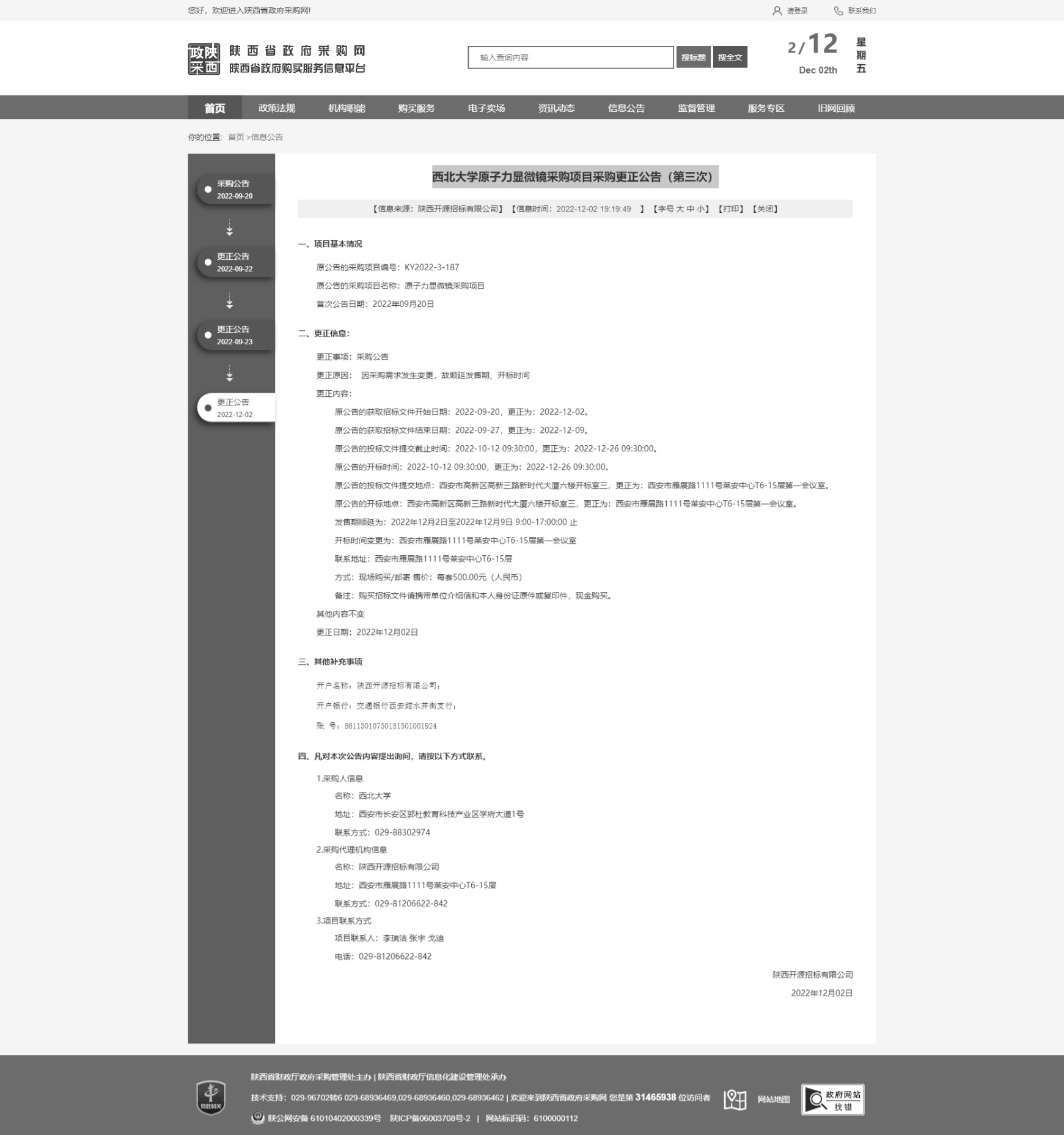开云手机网页版登录入口原子力显微镜采购项目采购更正公告(第三次) 作者: 编辑:采购与招标办公室 时间:2022-12-02 原公告链接:http://www.ccgp-shaanxi.gov.cn/freecms/site/shaanxi/ggxx/info/2022/8a69c4c88405ac2f0184d27d406137d7.html?noticeType=001031¬iceId=e90e6533-7233-11ed-9a8e-08c0eb20c666