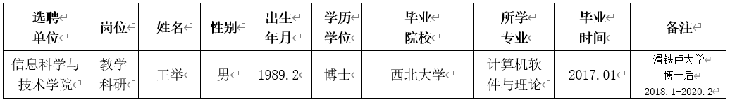 经用人单位推荐,人力资源部审查,学校教学督导及院系相关专家考核,开云手机网页版登录入口拟确定下列人员来校工作。本着公平、公正、公开的原则,现将本次拟选聘人员基本情况公示如下: