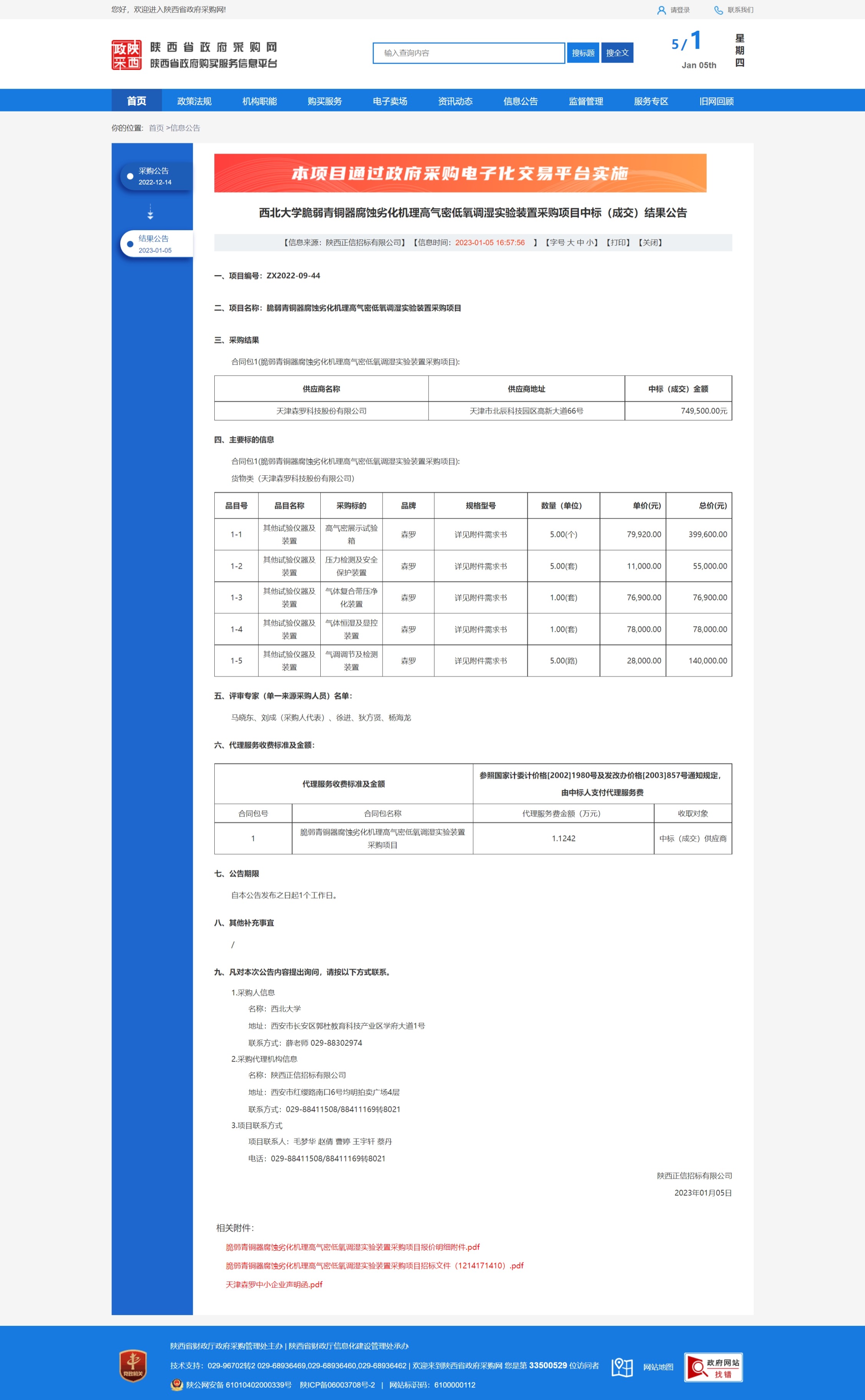 开云手机网页版登录入口脆弱青铜器腐蚀劣化机理高气密低氧调湿实验装置采购项目中标(成交)结果公告 作者: 编辑:采购与招标办公室 时间:2023-01-05 原公告链接:http://www.ccgp-shaanxi.gov.cn/freecms/site/shaanxi/ggxx/info/2023/8a69c054852dbea601858077ea453bb3.html?noticeType=001021¬iceId=cbc8e5cb-8cd7-11ed-9a8e-08c0eb20c666
