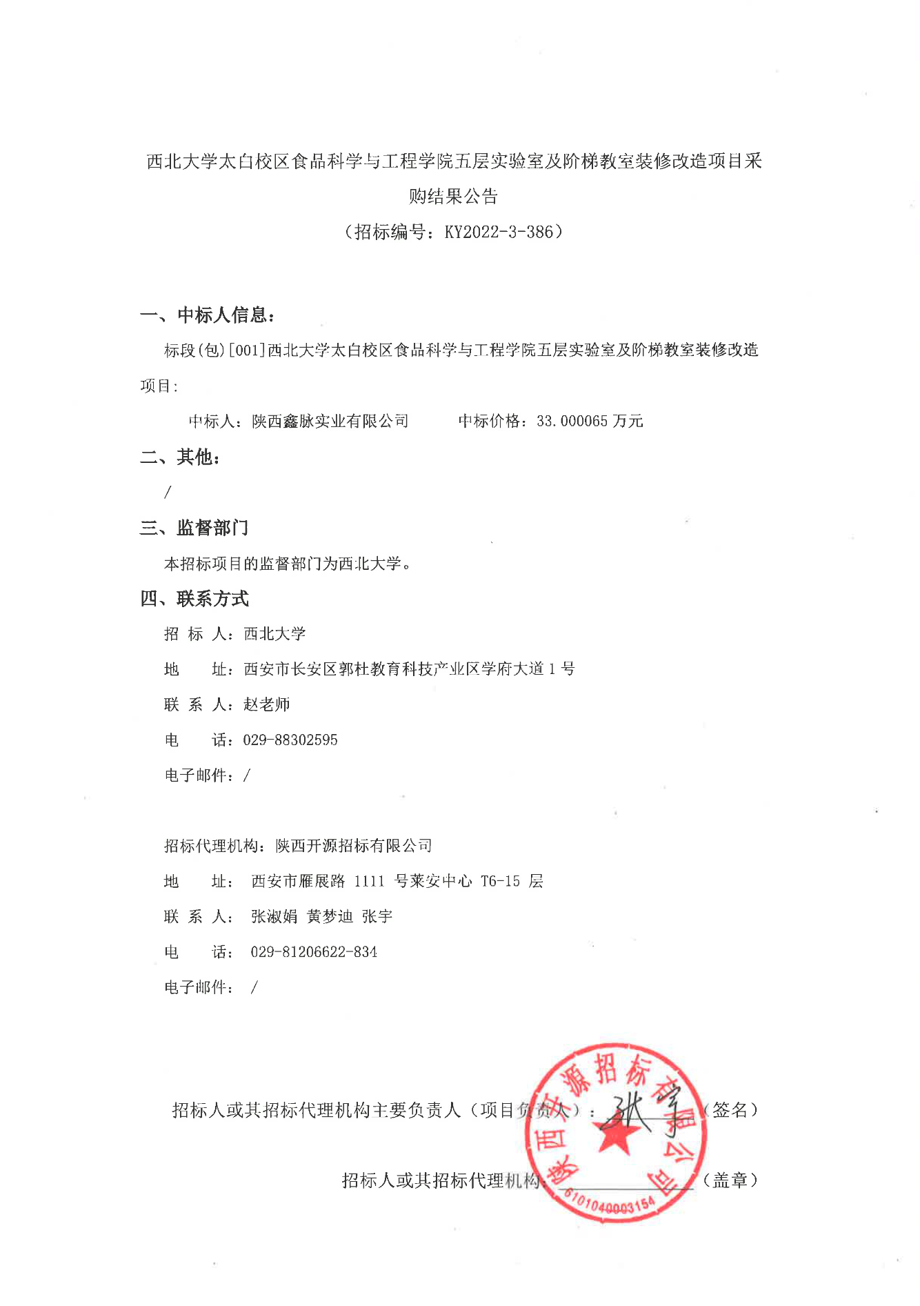 开云手机网页版登录入口太白校区食品科学与工程学院五层实验室及阶梯教室装修改造项目采购结果公告