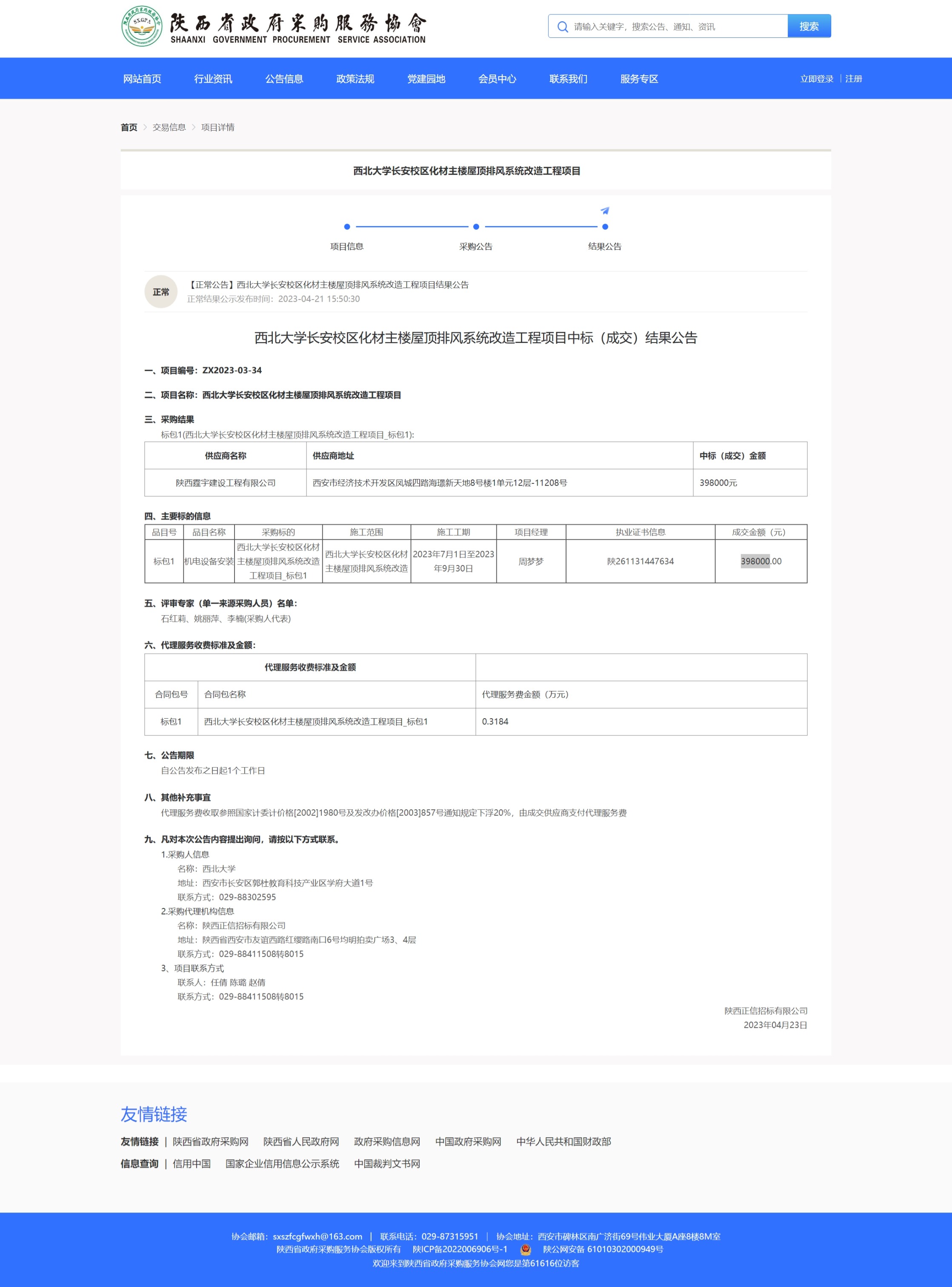 开云手机网页版登录入口长安校区化材主楼屋顶排风系统改造工程项目中标(成交)结果公告