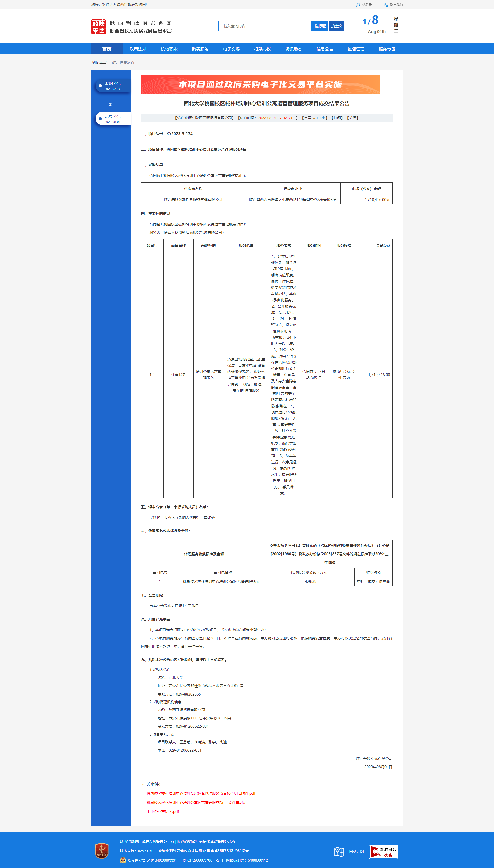 开云手机网页版登录入口桃园校区棫朴培训中心培训公寓运营管理服务项目成交结果公告