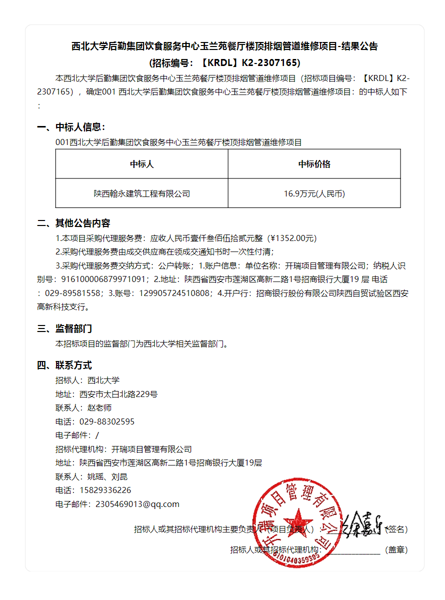 开云手机网页版登录入口后勤集团饮食服务中心玉兰苑餐厅楼顶排烟管道维修项目-结果公告